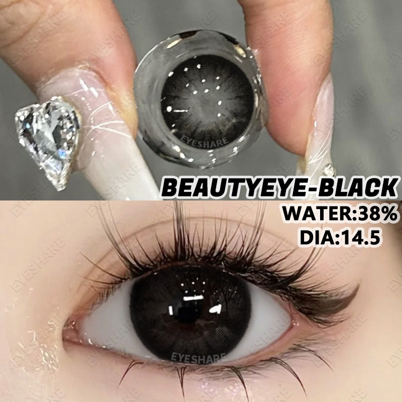 Eyeshare Beautyeye Lente De Contato Preta 1 Par De Lentes Coloridas De Olhos Grandes De 14.5 Mm Disponíveis Para Um Ano