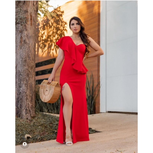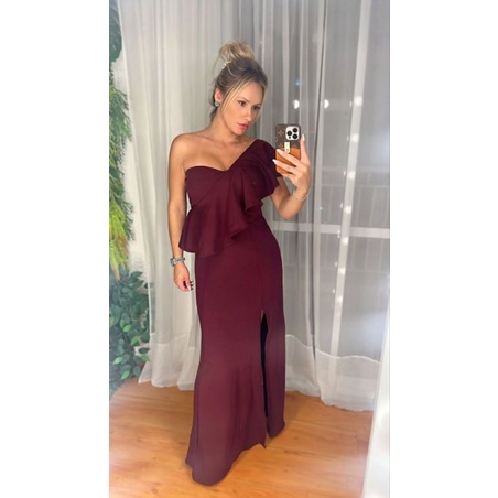 Vestido Longo Manga Babado Um Ombro Só Mula Manca Para Casamentos Madrinhas Festas E Eventos No Geral