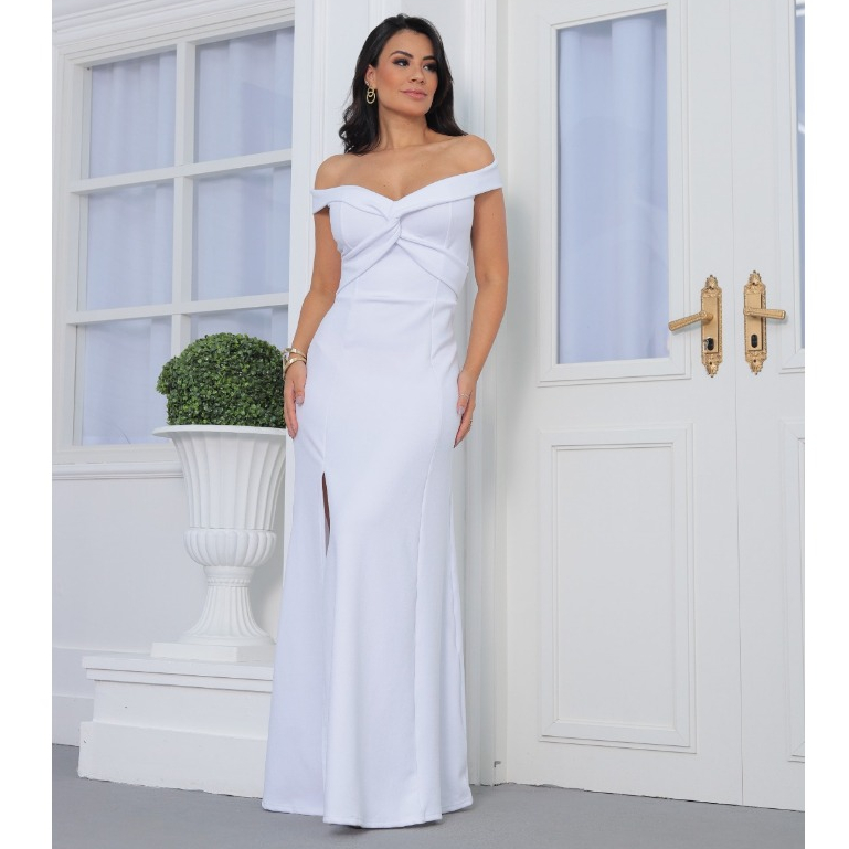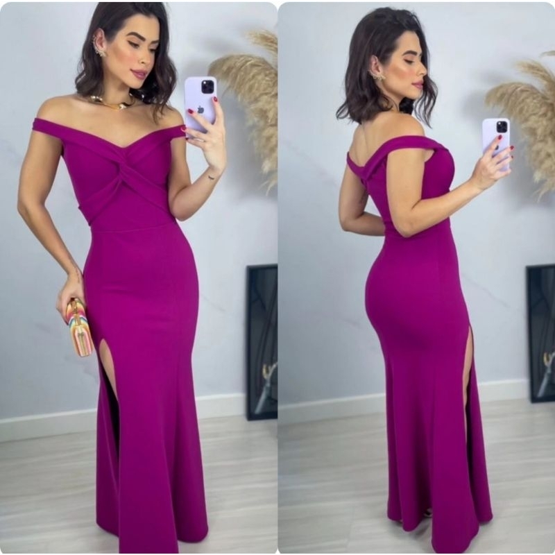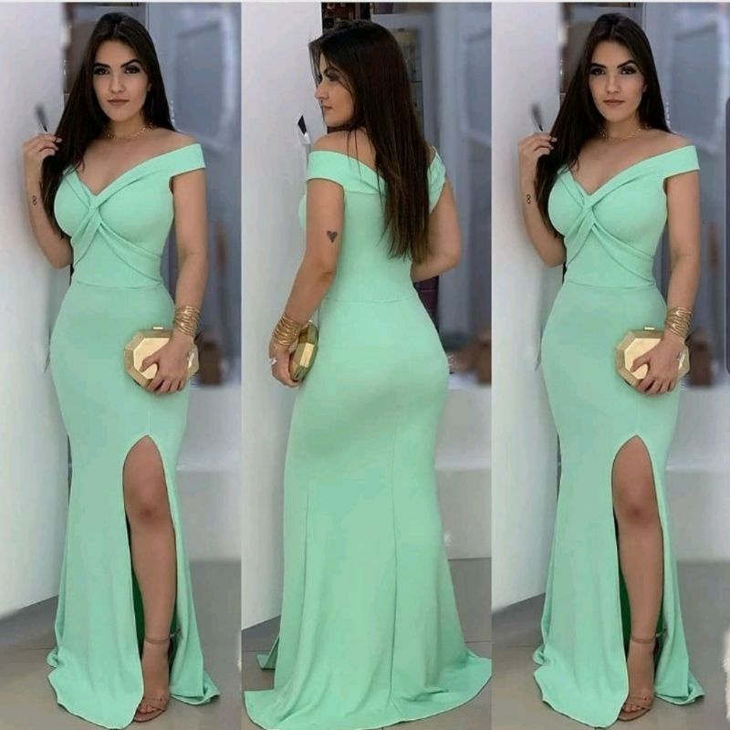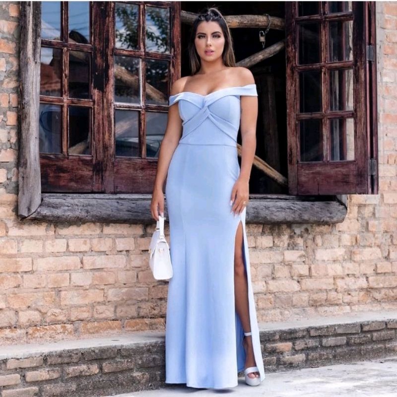 Vestido Longo Ombro A Ombro Cruzado No Busto Com Fenda Para Festas Casamentos Formaturas Madrinhas E Eventos No Geral