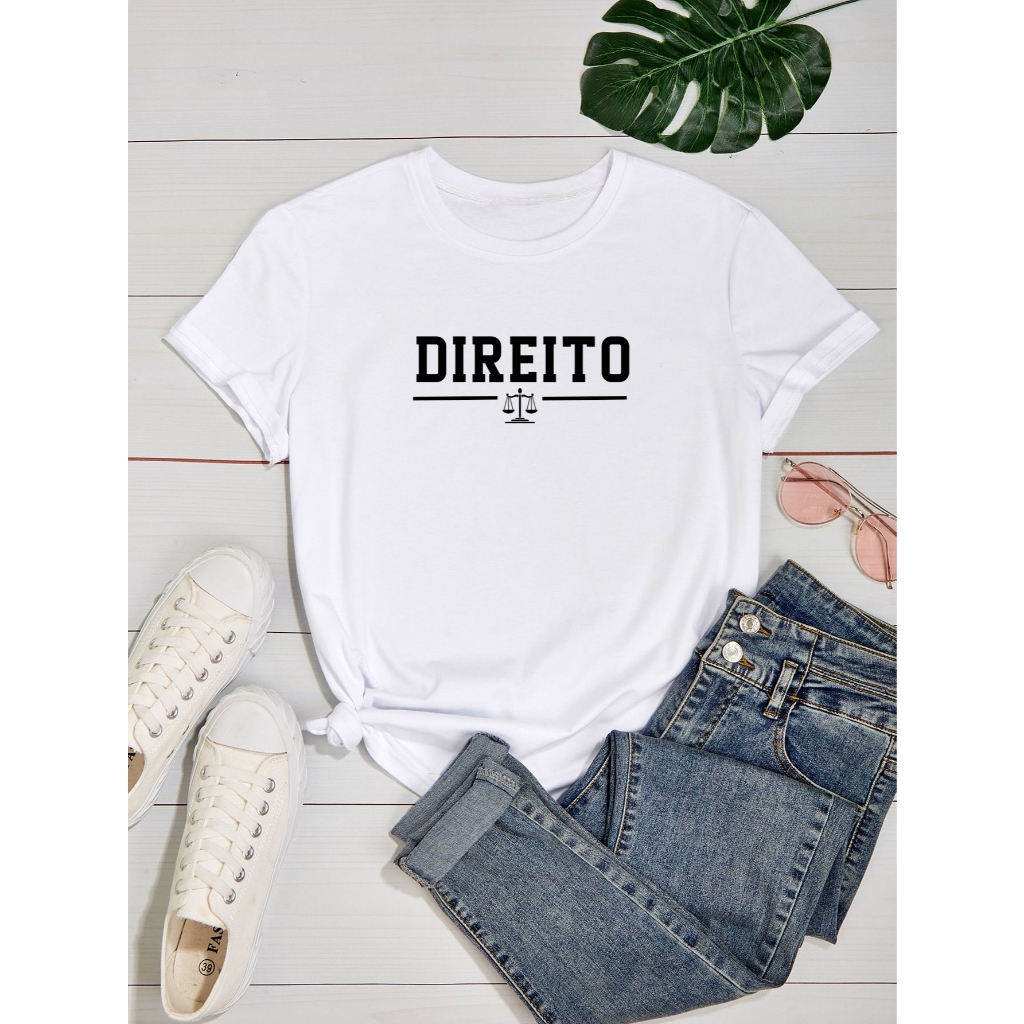 Blusa Feminina Baby Look Estampada Faculdade Direito com Brasão College Profissão 100% Algodão