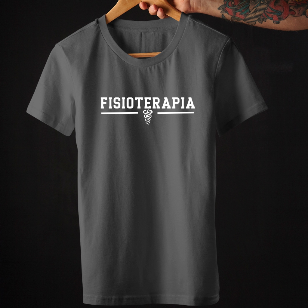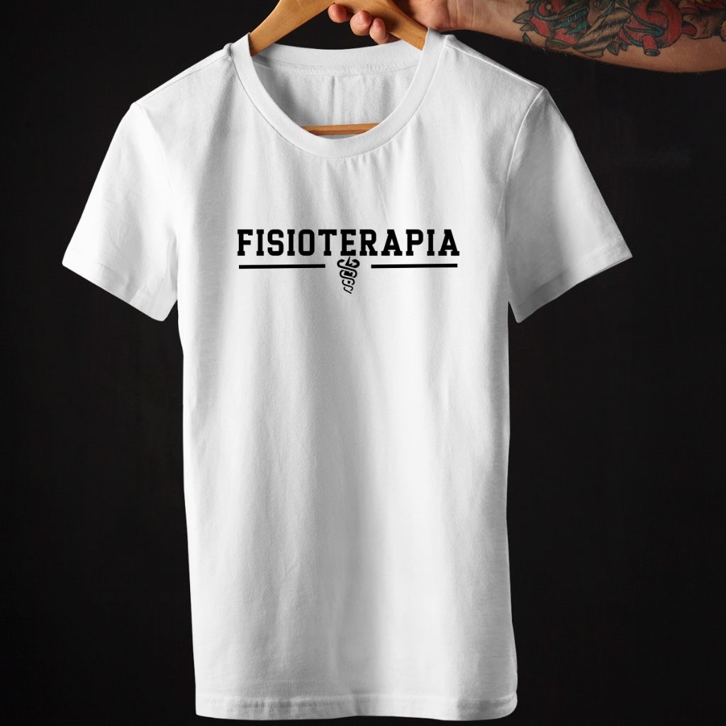 Camiseta Masculina Estampada Profissão Faculdade de Fisioterapia Brasão no Meio 100% Algodão