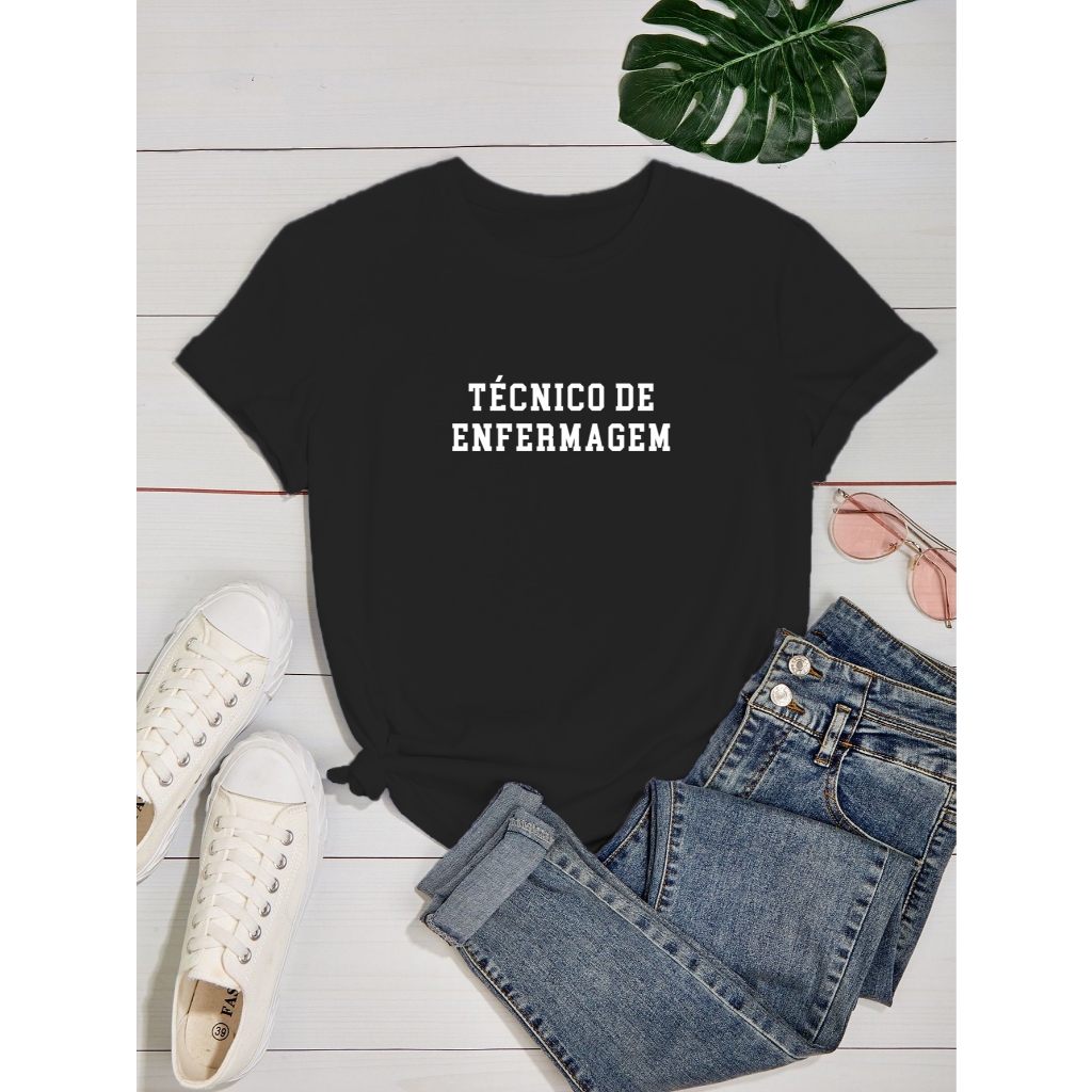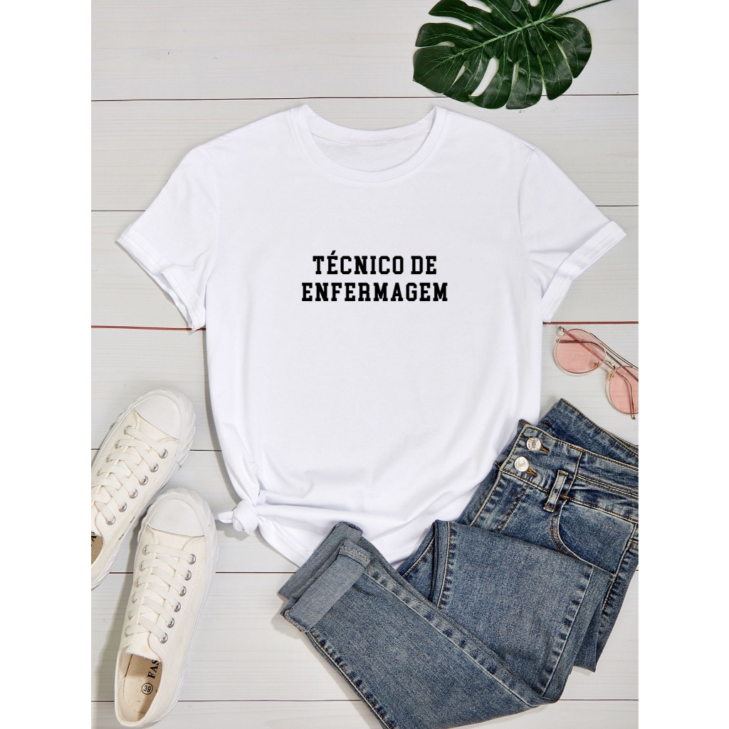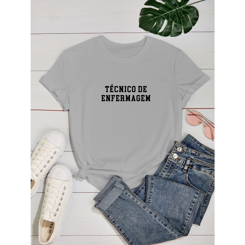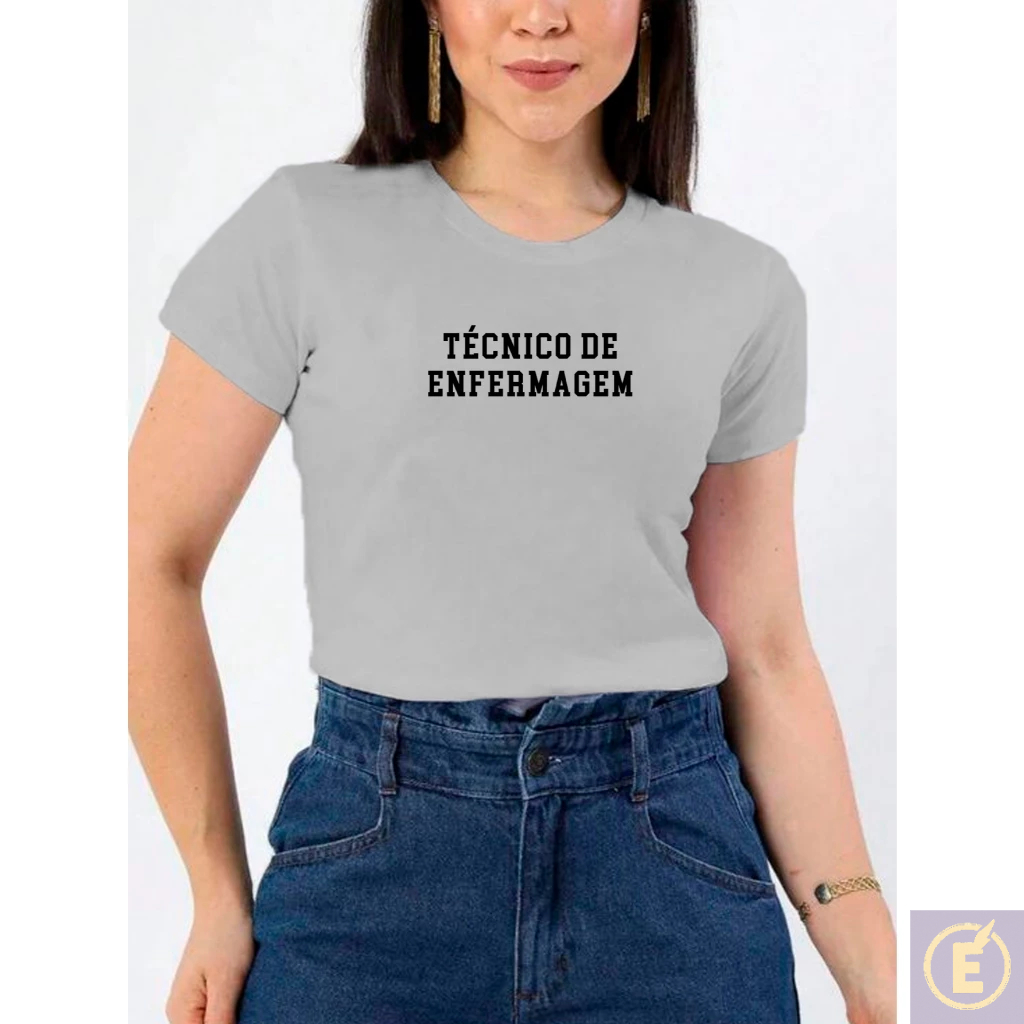 Blusa Feminina Baby Look Estampada Curso Técnico de Enfermagem no Meio 100% Algodão Confortável