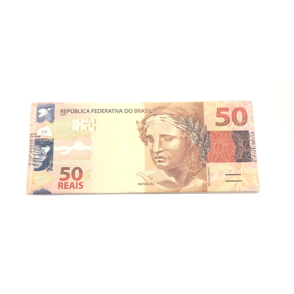 Kit 10 Carteiras Estampada de Notas Estrangeiras Dólar/ Euro/ Real Guardar Cédulas Documentos