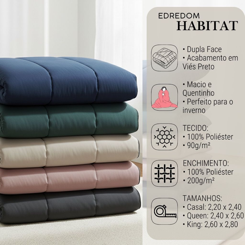 Edredom Dupla Face Casal Queen King Quentinho Macio Com Viés Habitat