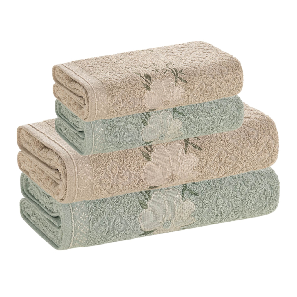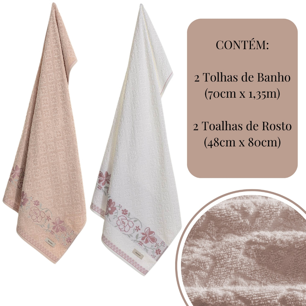 Jogo de Toalha 4 Peças Karsten 100% Algodão 2 Banho 2 Rosto Excelente Absorção Felpuda Macia Yuna