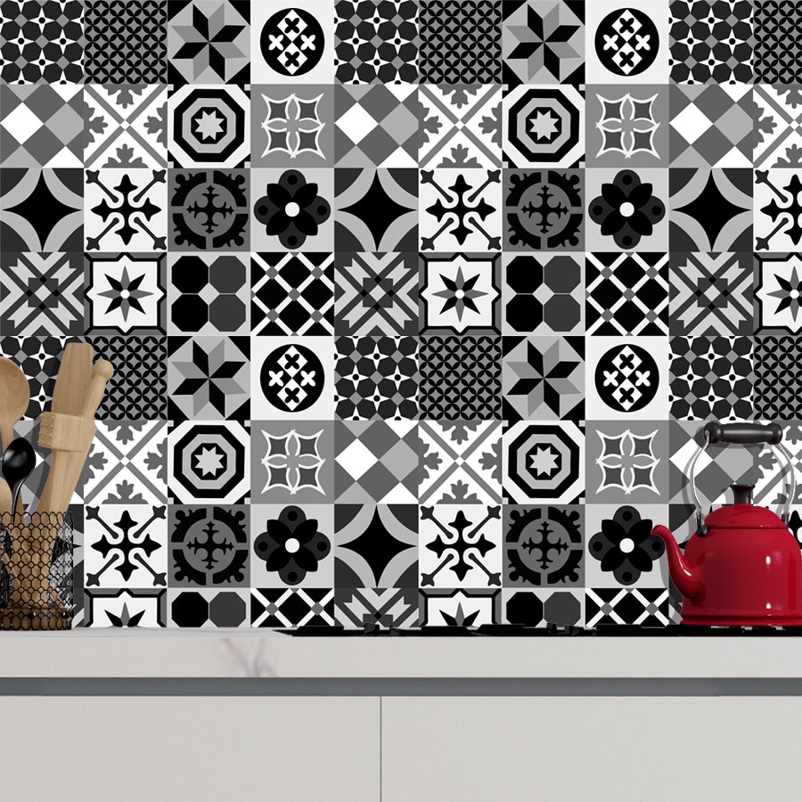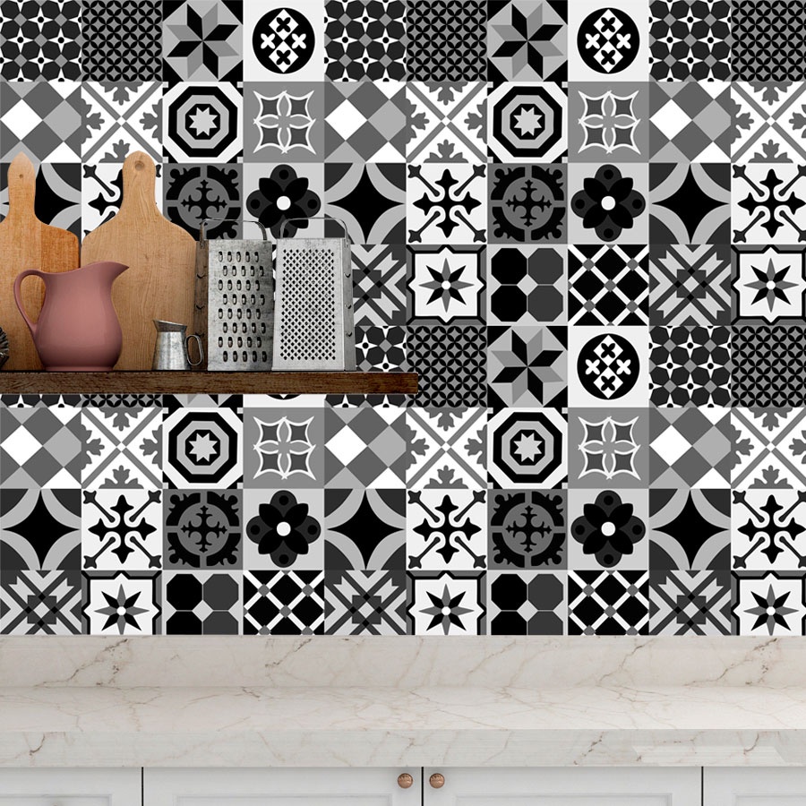 Papel de Parede Adesivo Azulejo Português Preto e Branco