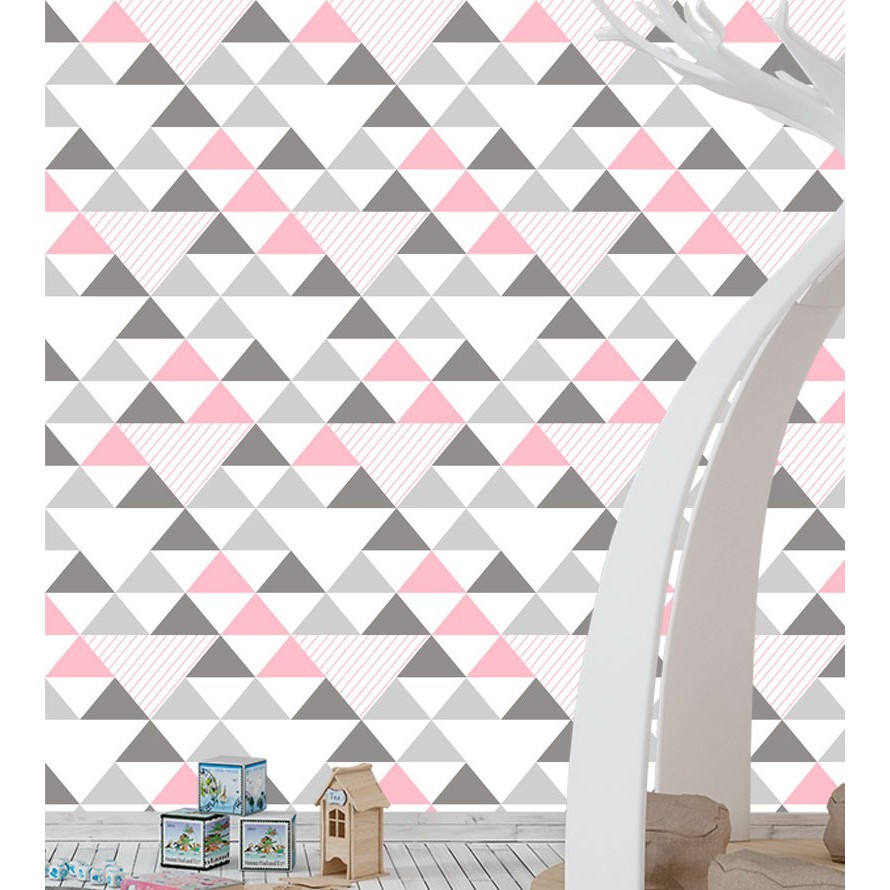Papel de Parede Adesivo Geométrico Triângulos Cinza e Rosa Autocolante