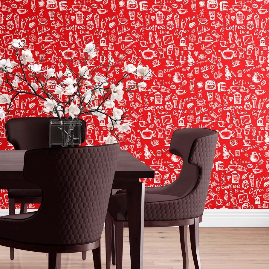 Papel De Parede Vinílico Lavável Cozinha Gourmet Café Vermelho