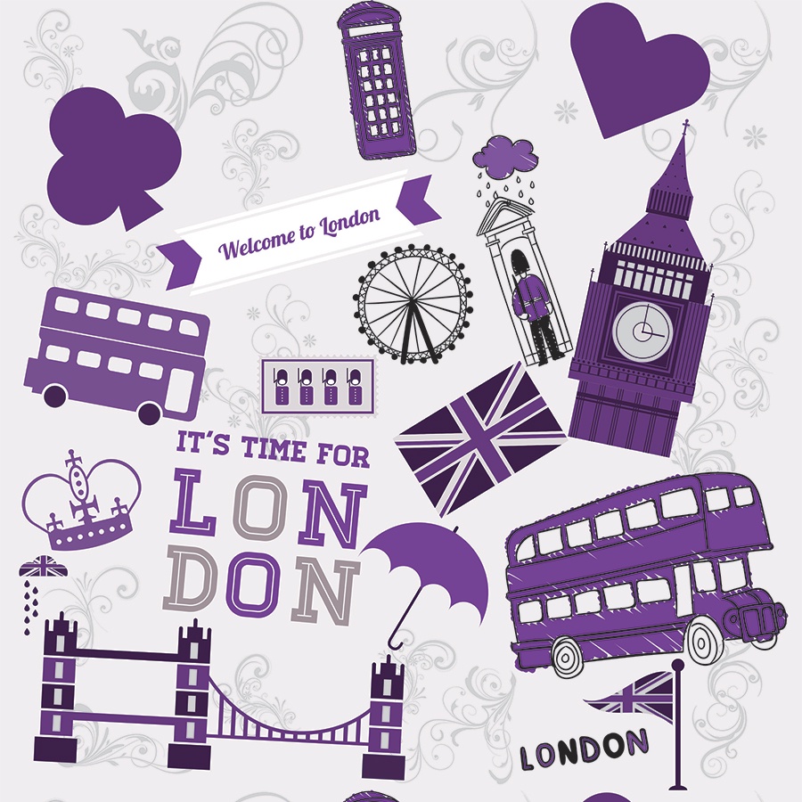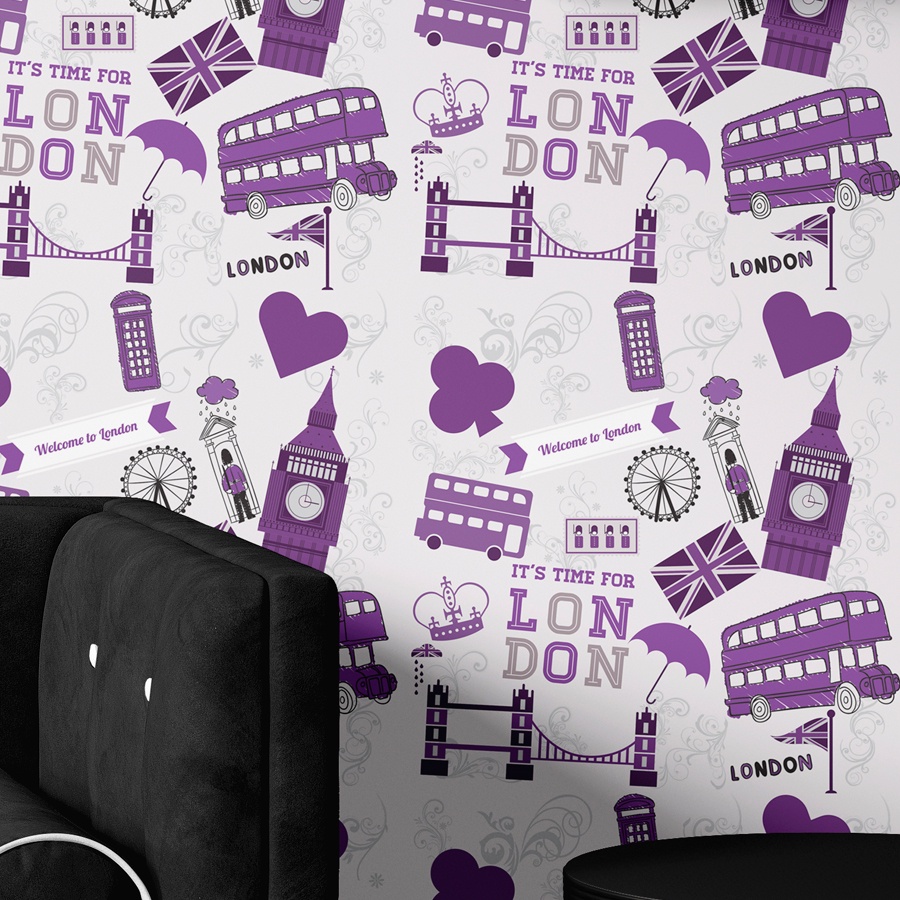 Papel De Parede Sala e Quarto Londres Roxo Autoadesivo