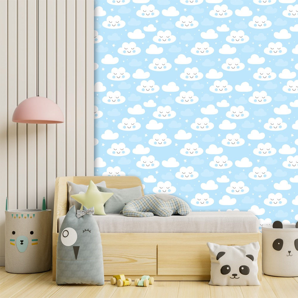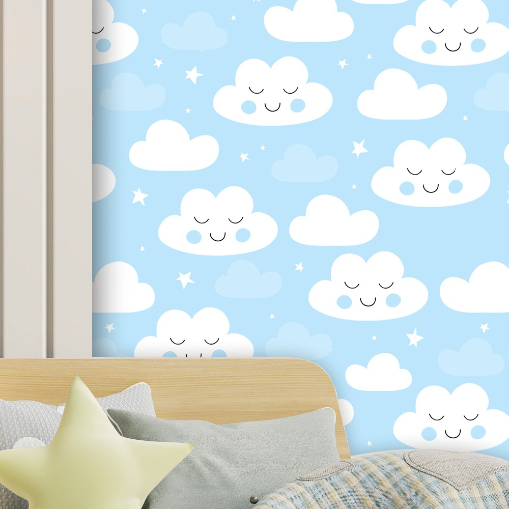 Papel De Parede Auto Colante Nuvem Azul Infantil Quarto