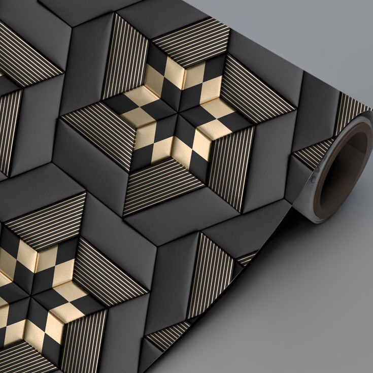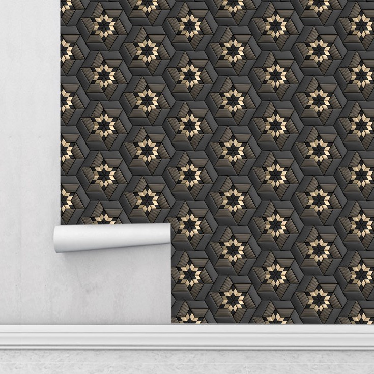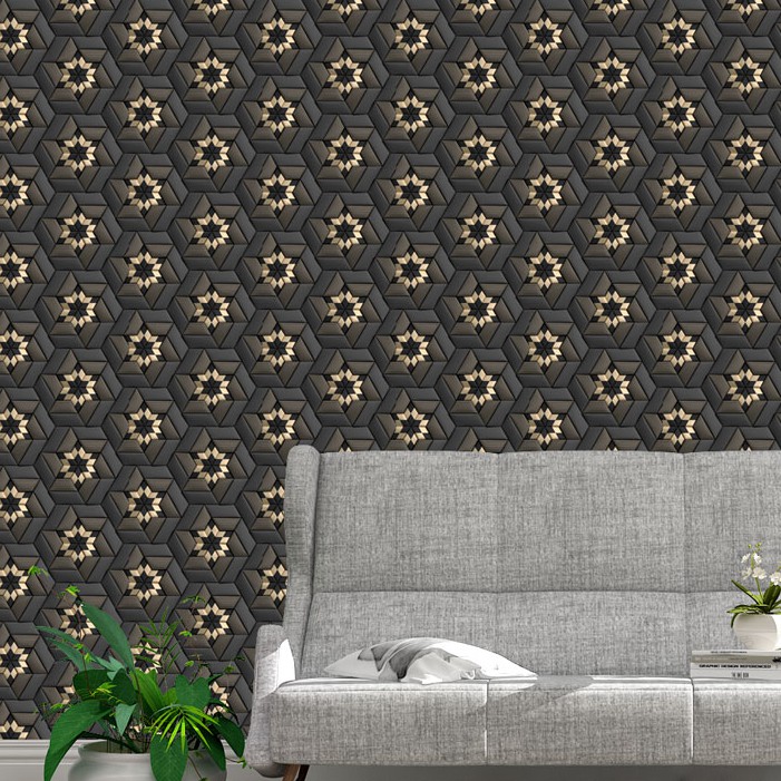Papel De Parede 3d Dourado Preto Geométrico Rolo Autocolante Adesivo
