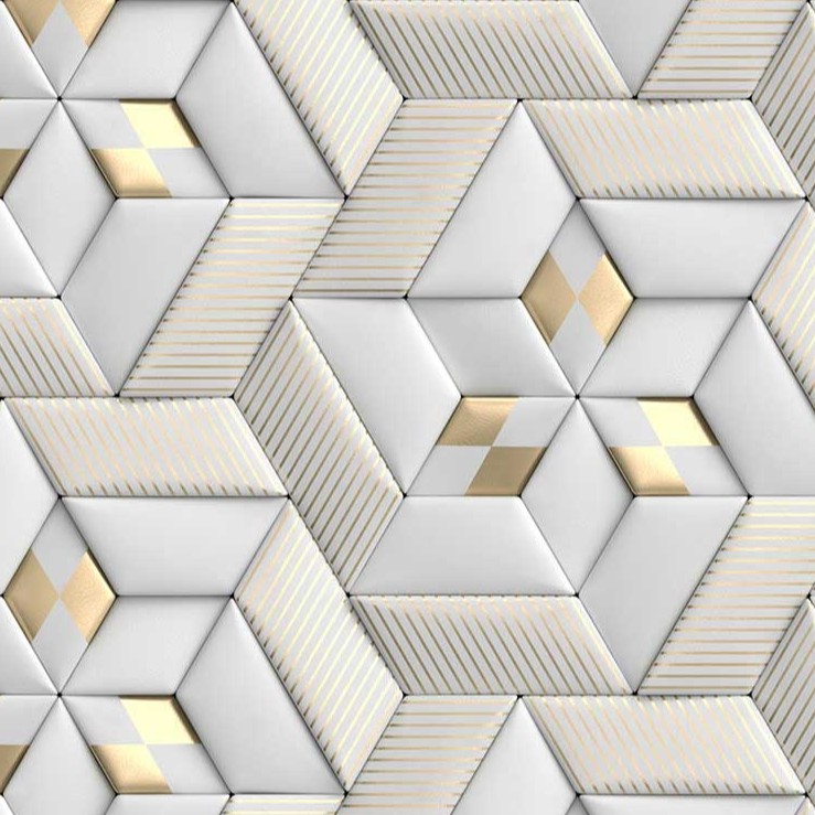 Papel De Parede 3d Dourado Cinza Geometrico Rolo Autocolante 3 Metros