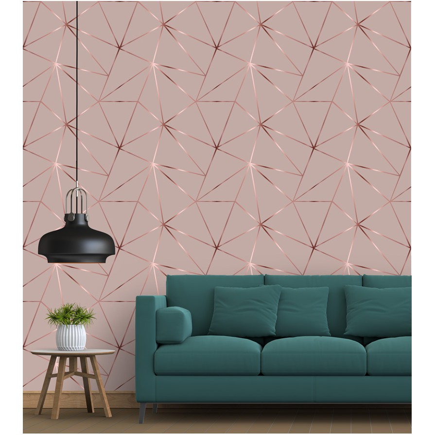 Papel De Parede Geométrico Rose Gloss Lavável Colante