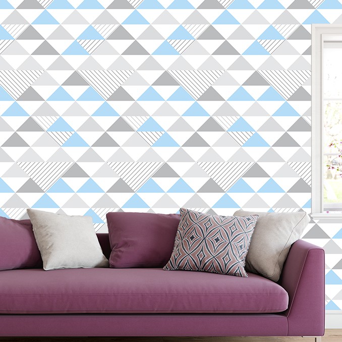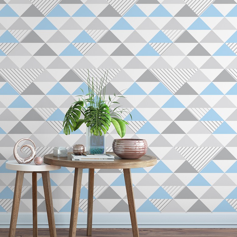 Papel De Parede 3d Triangulo Geométrico Azul, Cinza e Branco Adesivo Vinilico Autocolante