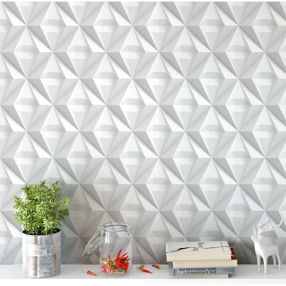 Papel De Parede Imita 3d Adesivo Vinílico Lavável Triangulo Branco E Cinza
