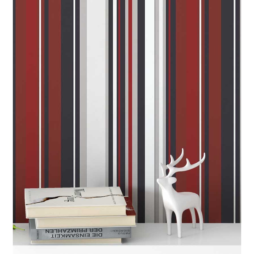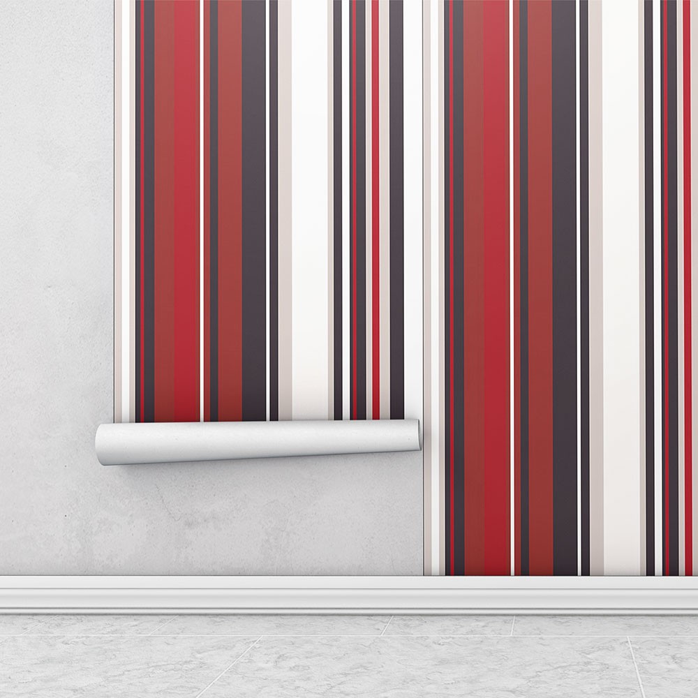 Papel de parede listrado vermelho preto e branco Para Quartos e Sala