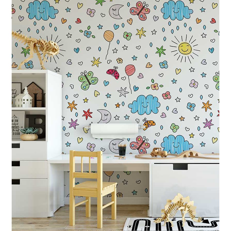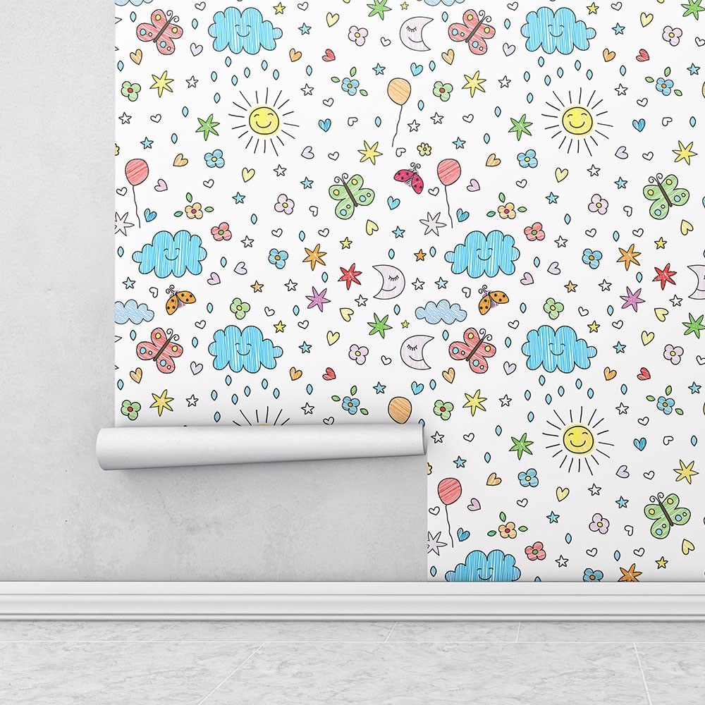 Papel de parede com desenhos infantis céu sol estrelas Ideal Para Quarto Infantil