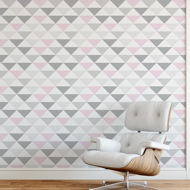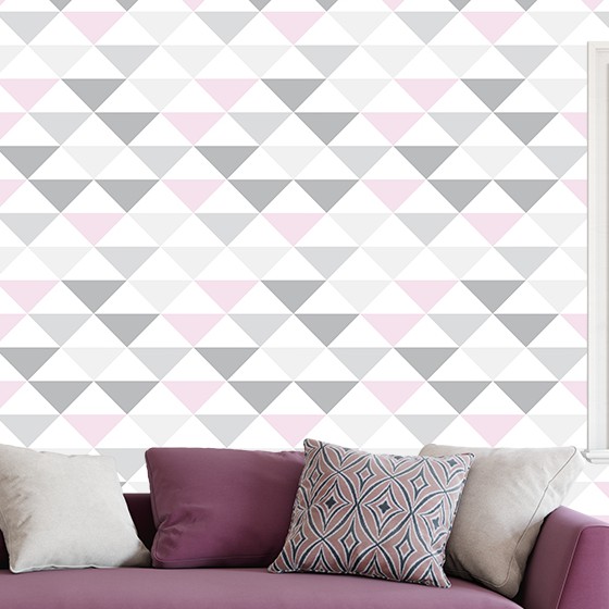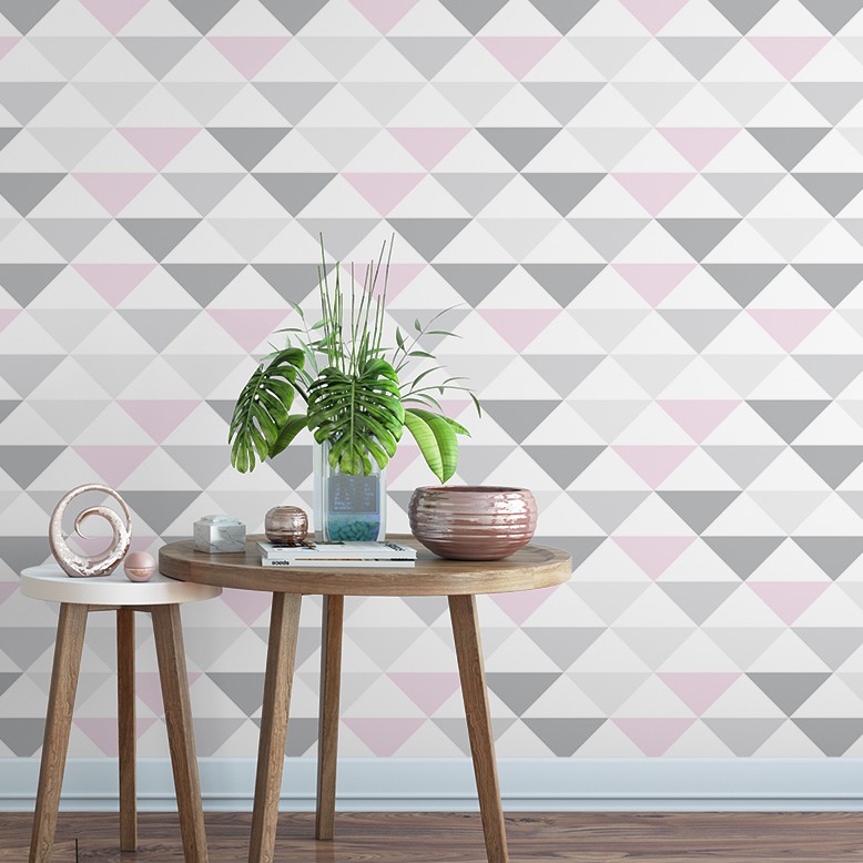 Papel De Parede 3d Triangulo Geométrico Rosa Cinza Adesivo Vinilico Autocolante