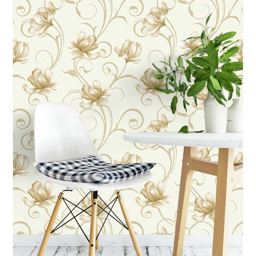Papel De Parede Floral Ramalhete Bege e Marrom Para Quartos e Sala