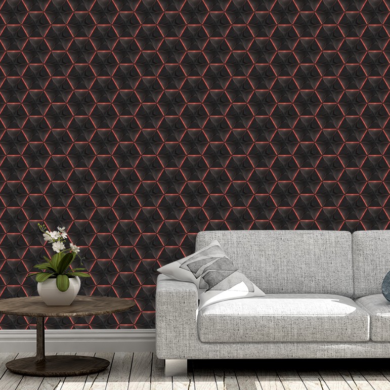 Papel De Parede Adesivo 3d Vinilico Hexágono Preto com tons de Vermelho