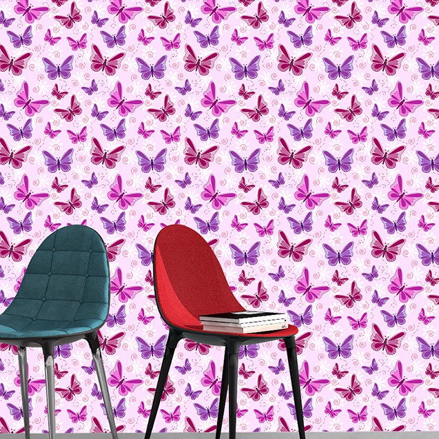 Papel de Parede Adesivo Autocolante Infantil Borboletas Rosas