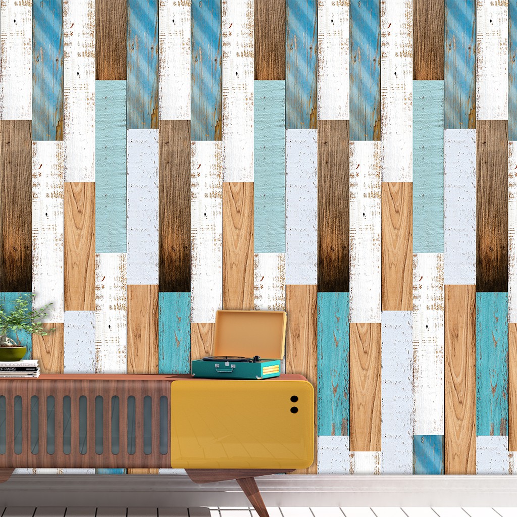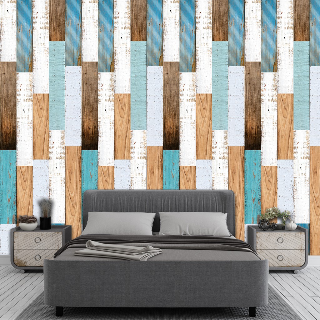 Papel de Parede Adesivo Estilo Madeira com Tacos Coloridos