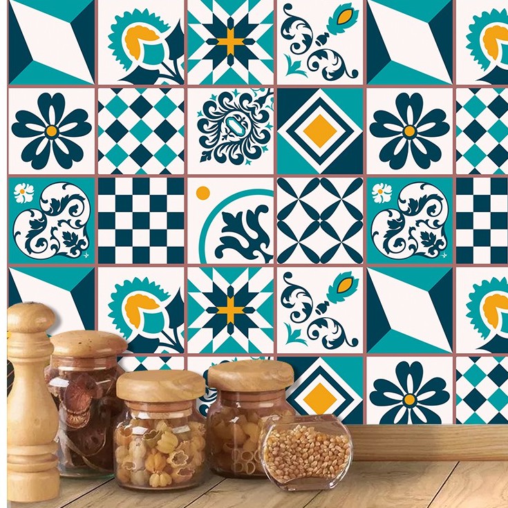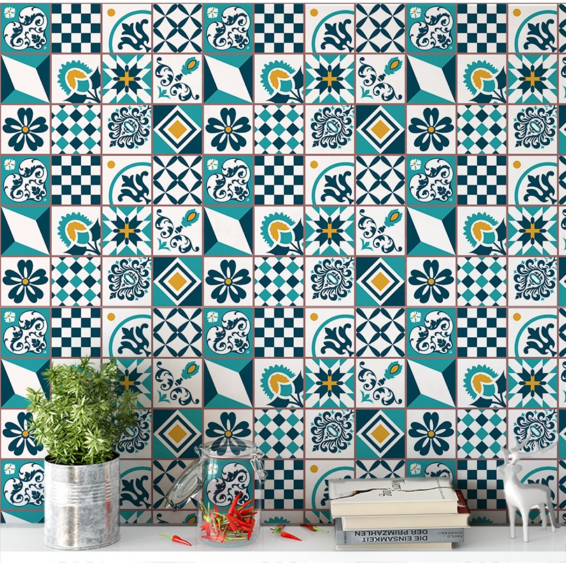 Papel de Parede Azulejo Lavável Português em Tons de Verde