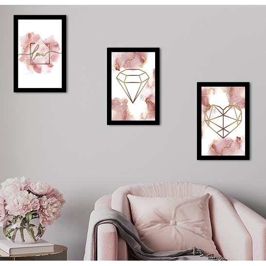 Kit Quadro Decorativo De Parede Abstrato Frases Amor 20x30