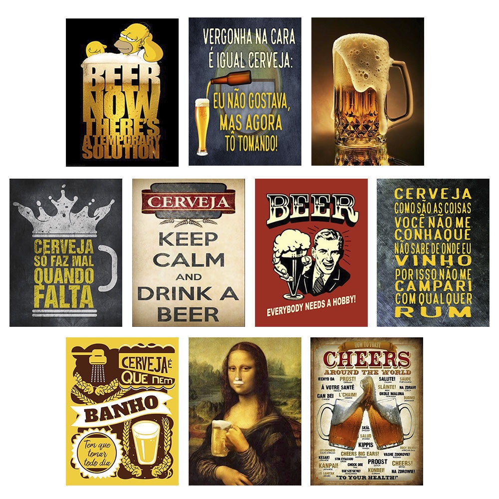 Kit 10 Placas Decorativas Cervejas Bar Chopp Bebidas 15x20cm