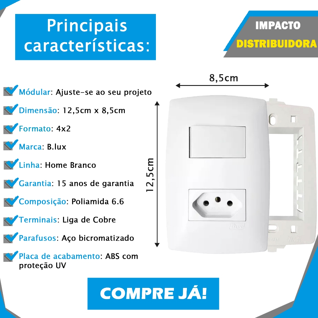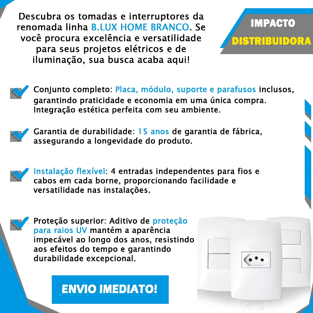 Tomadas Interruptores 4x2 Blux Home Branco Conjunto Montado 10A 20A