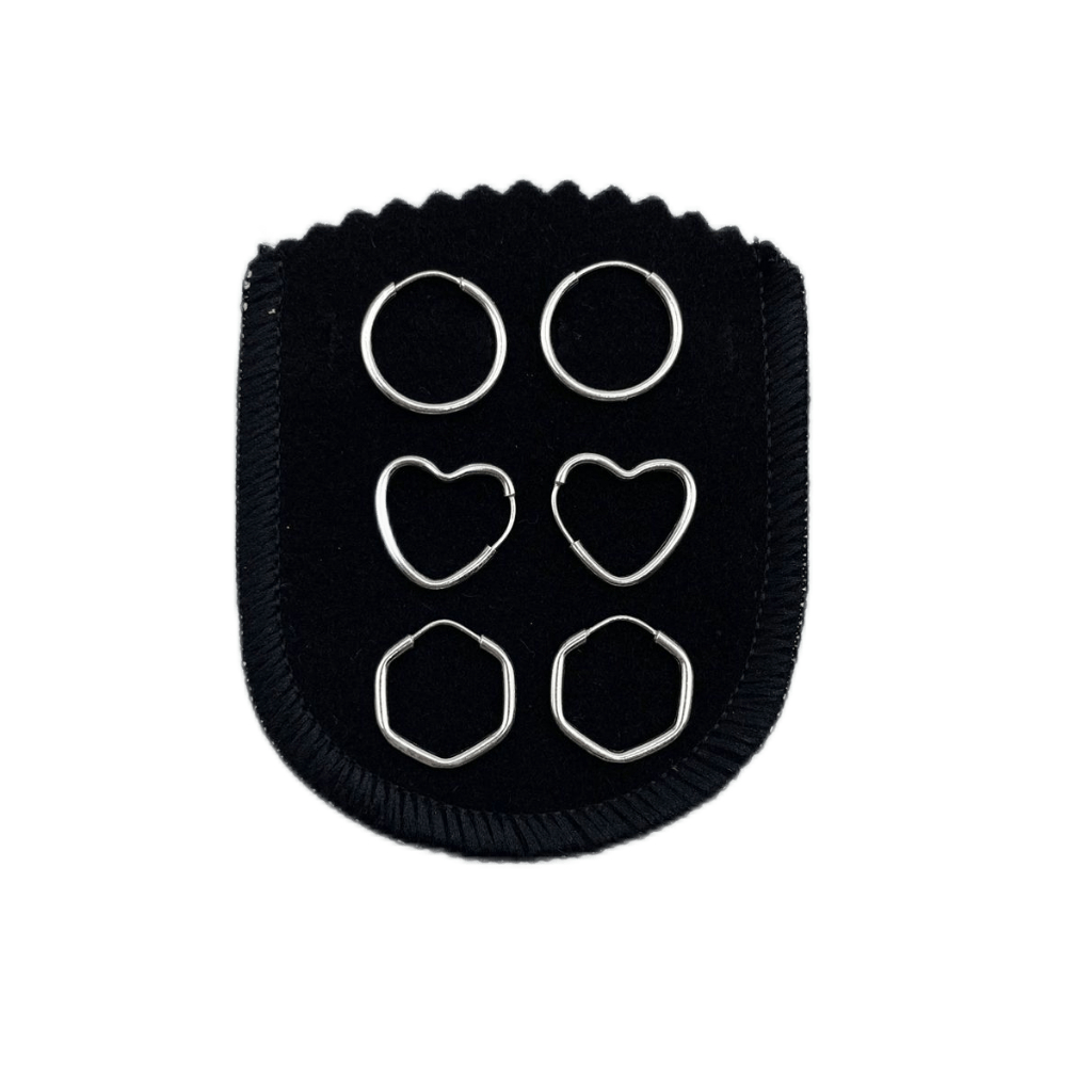 Kit Trio Brinco Argolas Prata 925 Coração Redonda Hexagono