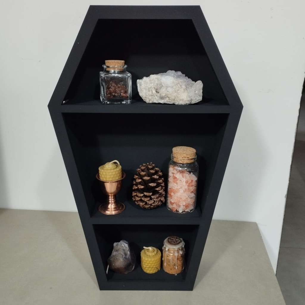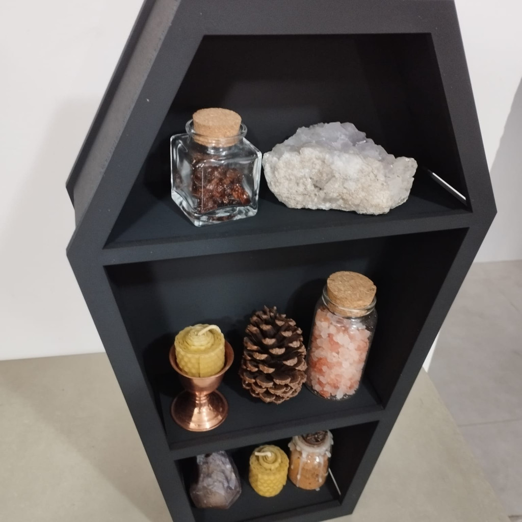 Prateleira caixão gótico bruxas nicho de mesa wicca porta cristais