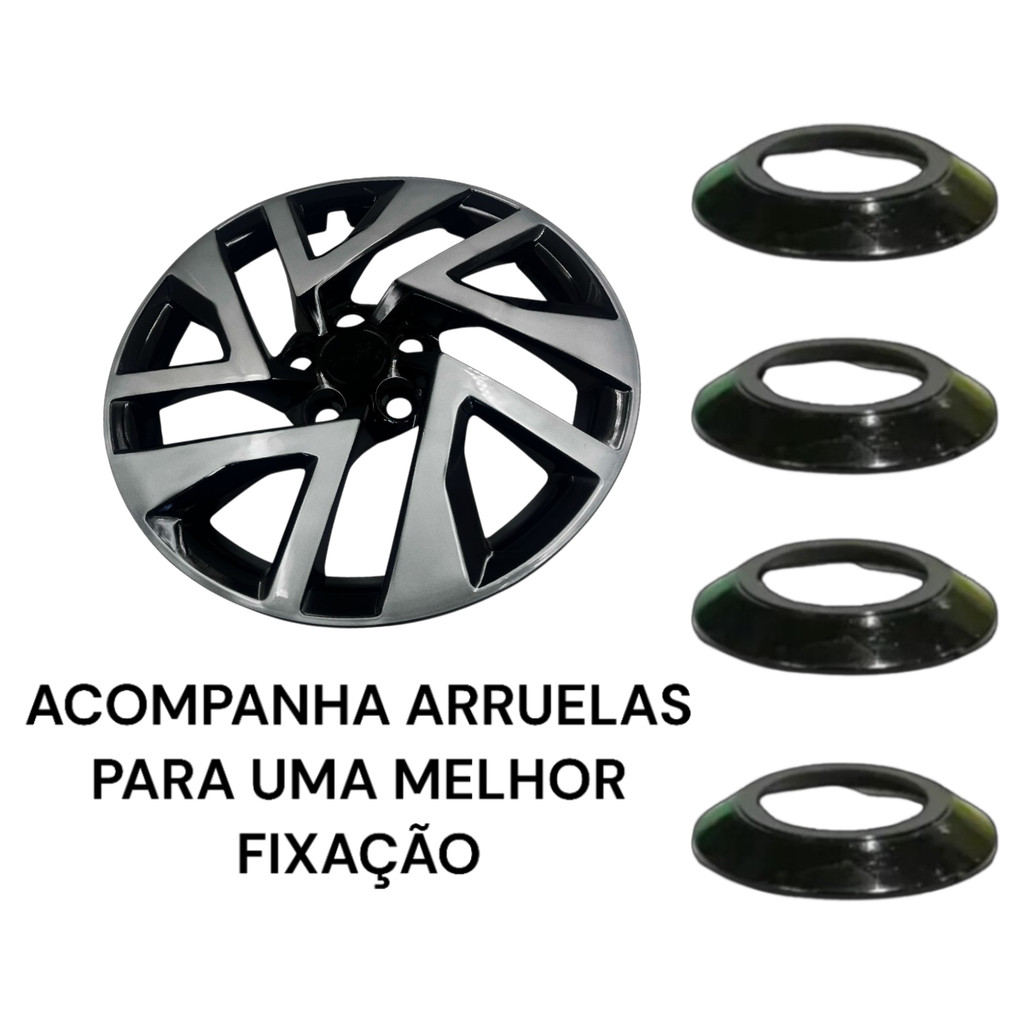 Jogo Calota Aro 15 Polo Virtus 2023 Preto com Prata Modelo Esportivo