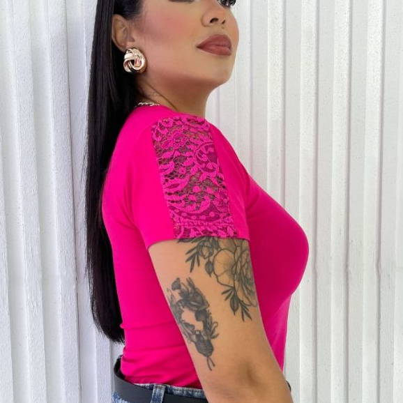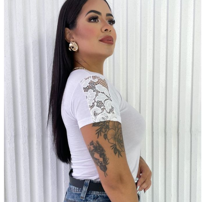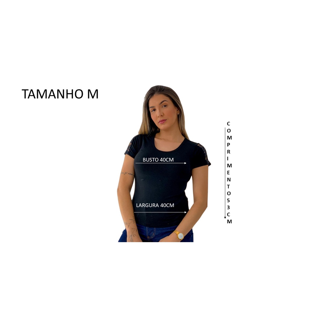 Kit 2 Blusa Feminina Tshirt Manga Curta Detalhe de RENDA Camiseta