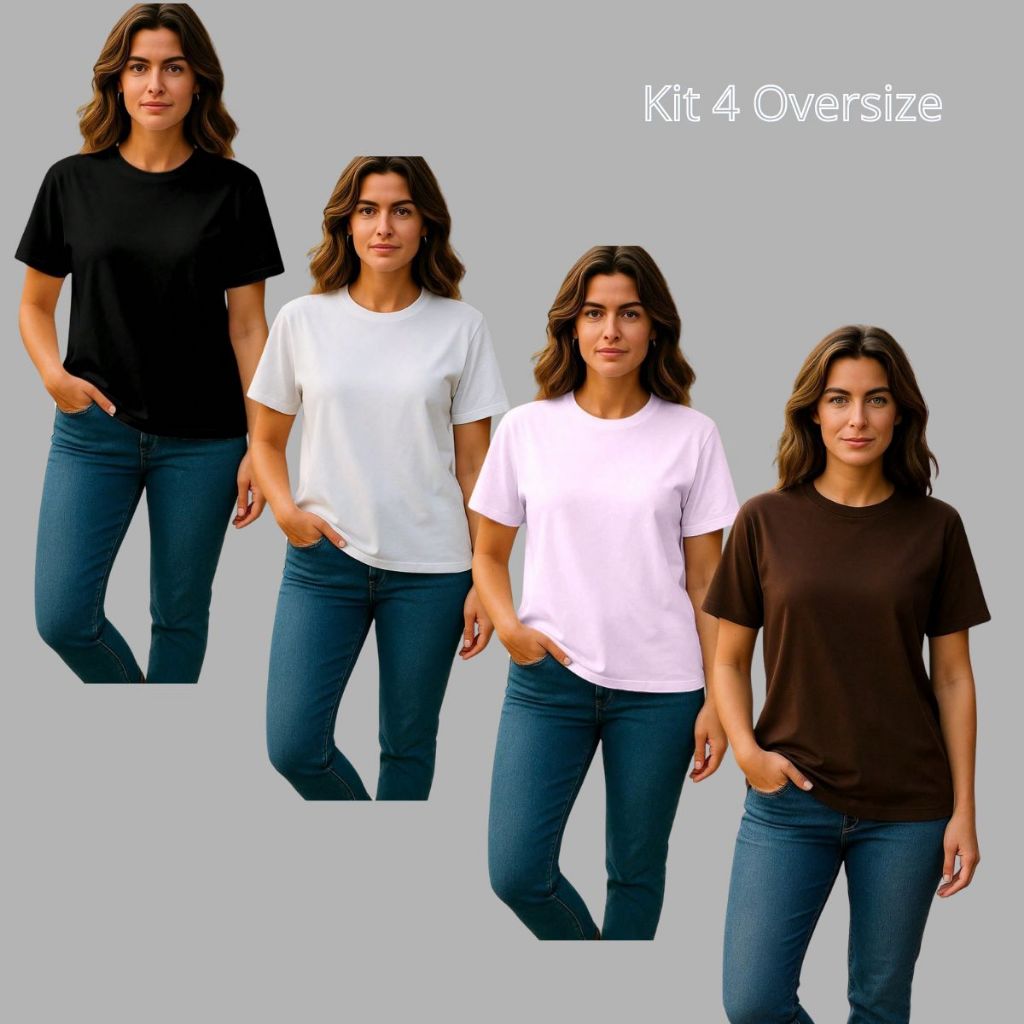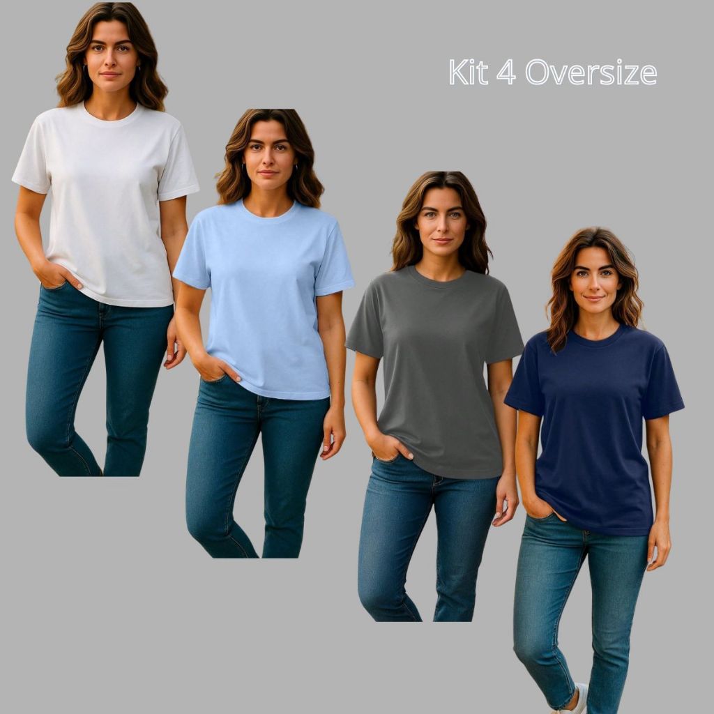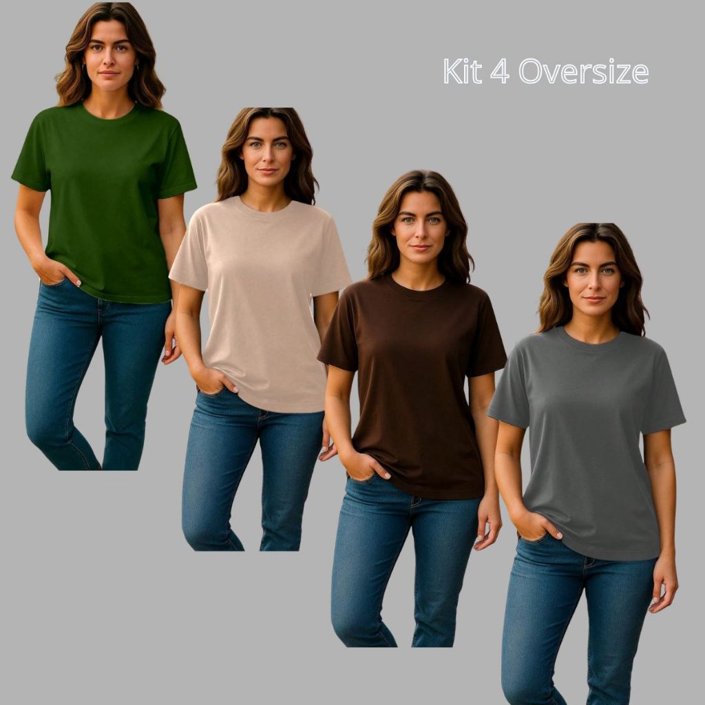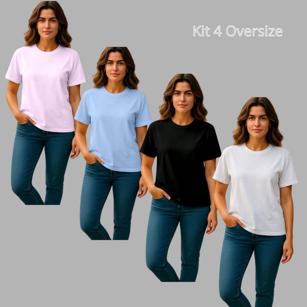Kit 4 Camiseta feminina Oversize Basica 100% algodao Premium