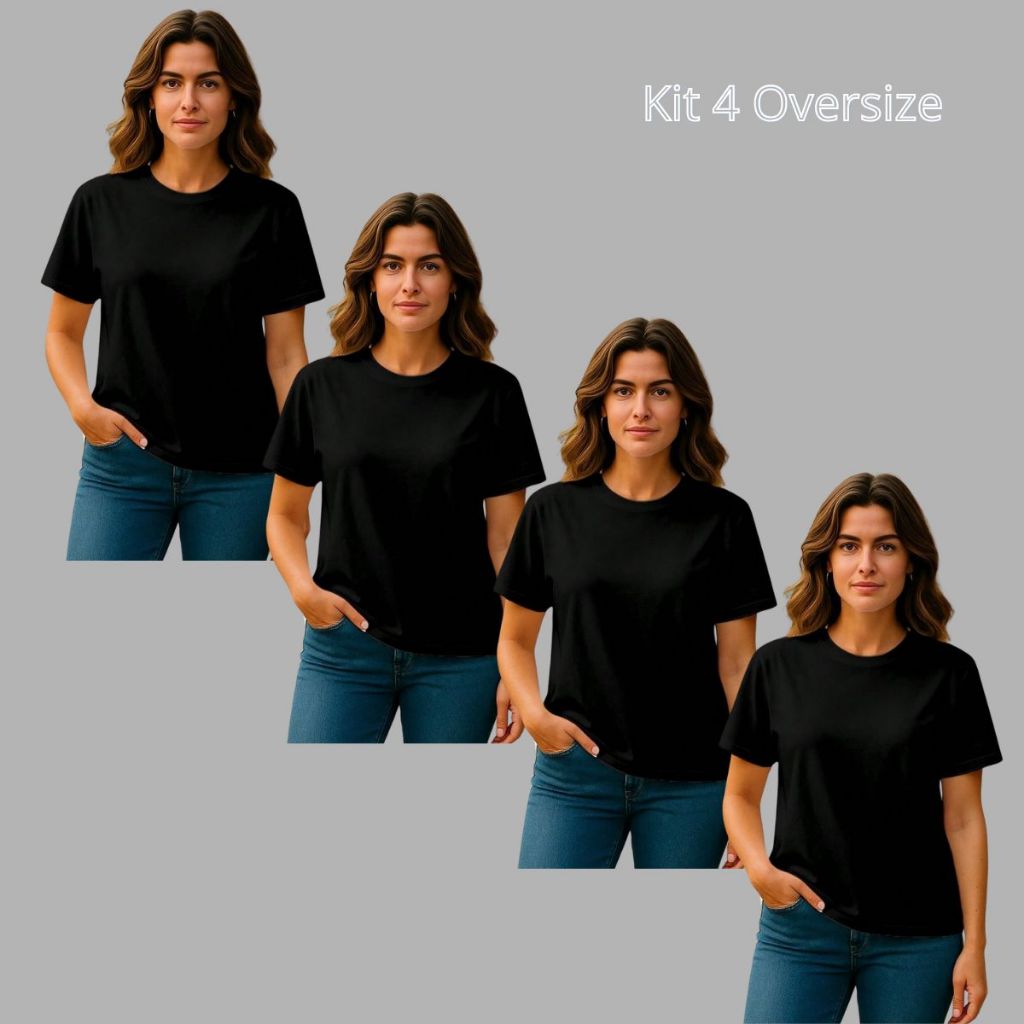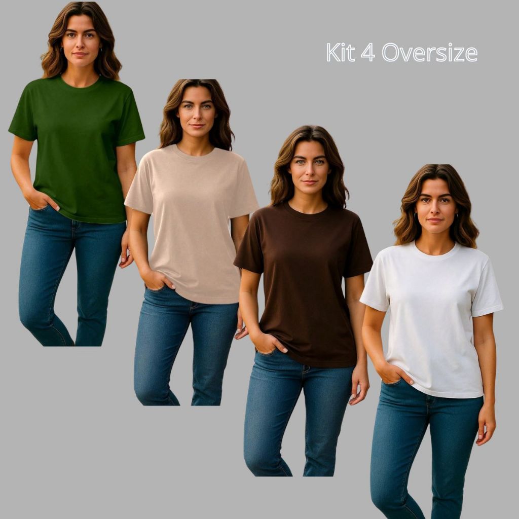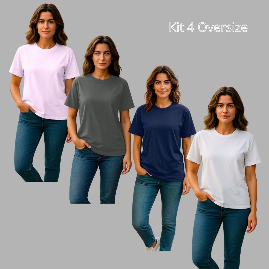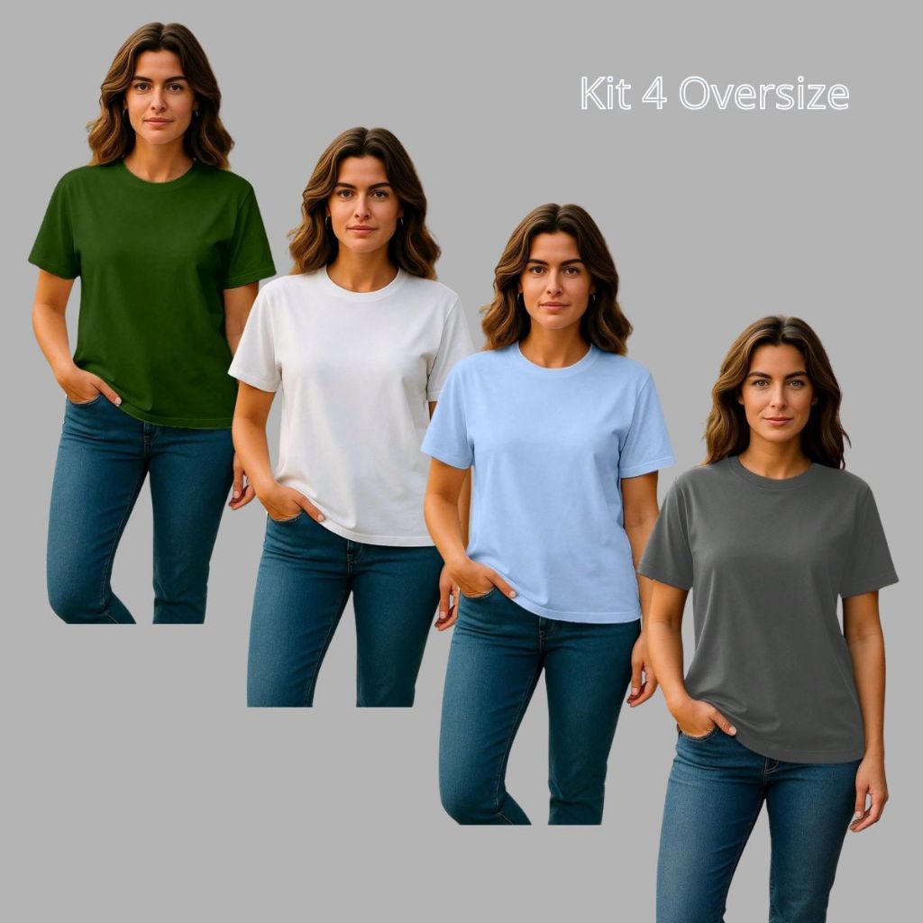 Kit 4 Camiseta feminina Oversize Basica 100% algodao Premium