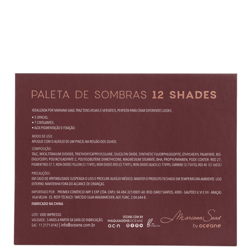 Mariana Saad By Océane 12 Shades - Paleta de Sombras 205g