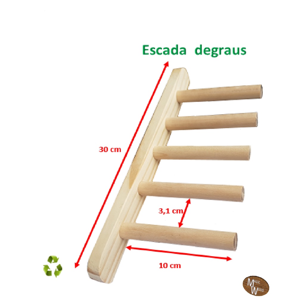 Escada 30 cm, poleiro, pássaros e aves de gaiolas, Roselas- Jandaias- Marianinha- Lóris- Papagaios- Ring necksh
