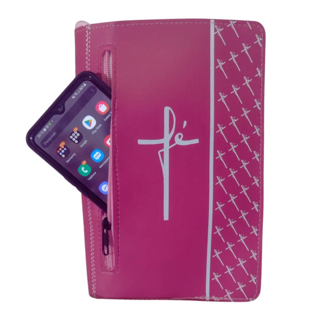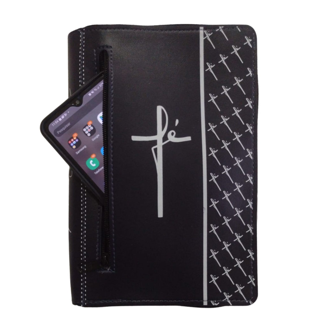 Capa para Bíblia de Estudo Grande Número 13 - Capa com Zíper e Bolso Externo Escrito Fé Protetora para Bíblias Grandes