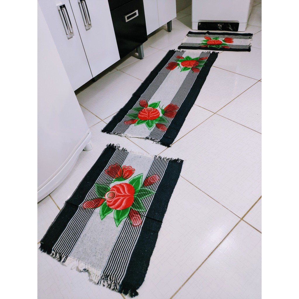 Jogo De Cozinha Tapete Kit Com 3 Peças Passadeiras Barato