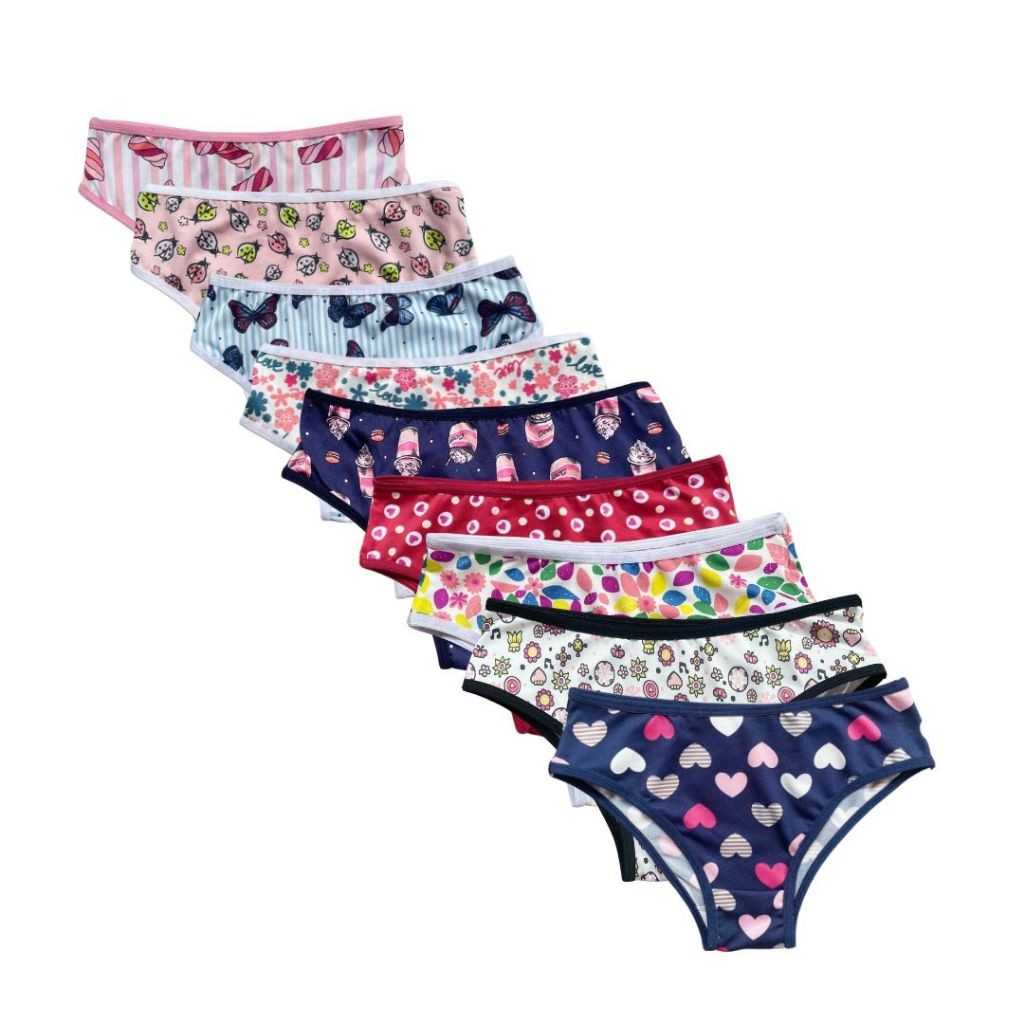 Kit 8 e 4 Calcinhas Juvenil Para Adolescente até 15 Anos Forro 100% Algodão Estamapada