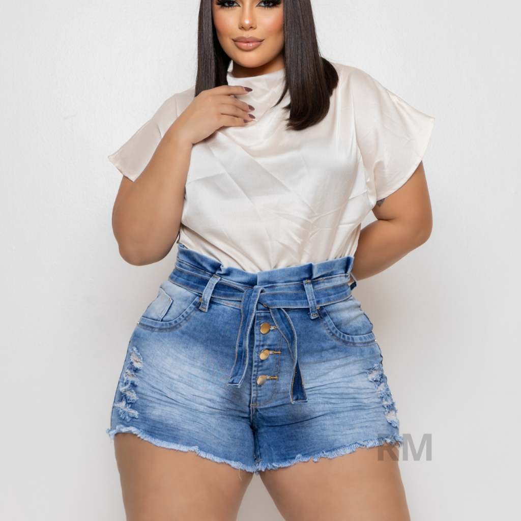 Short Jeans Feminino Plus Size Com Lycra 44 / 54 Cintura Alta