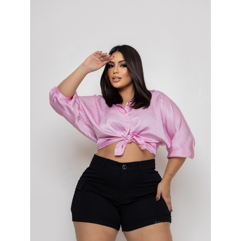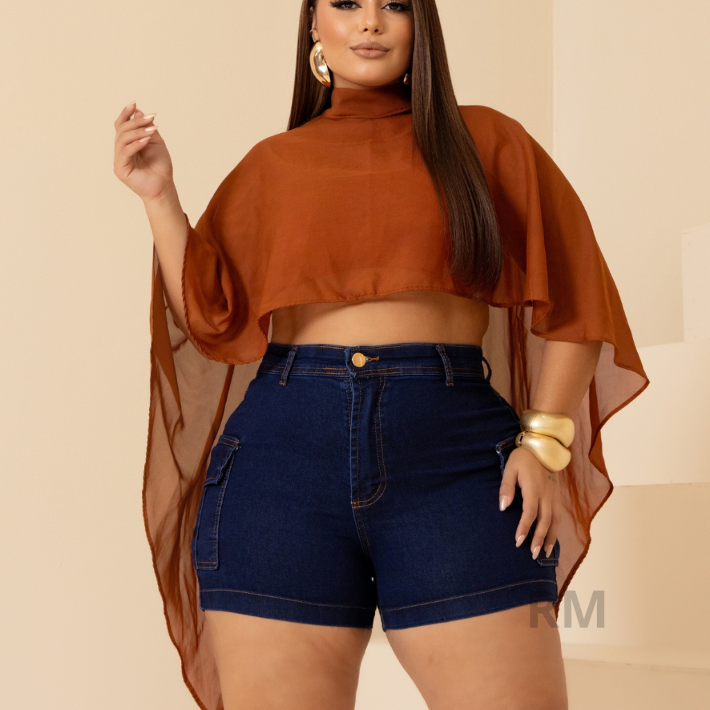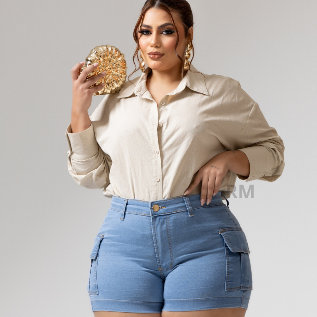 SHORTS JEANS FEMININO CARGO PLUS SIZE COM LYCRA