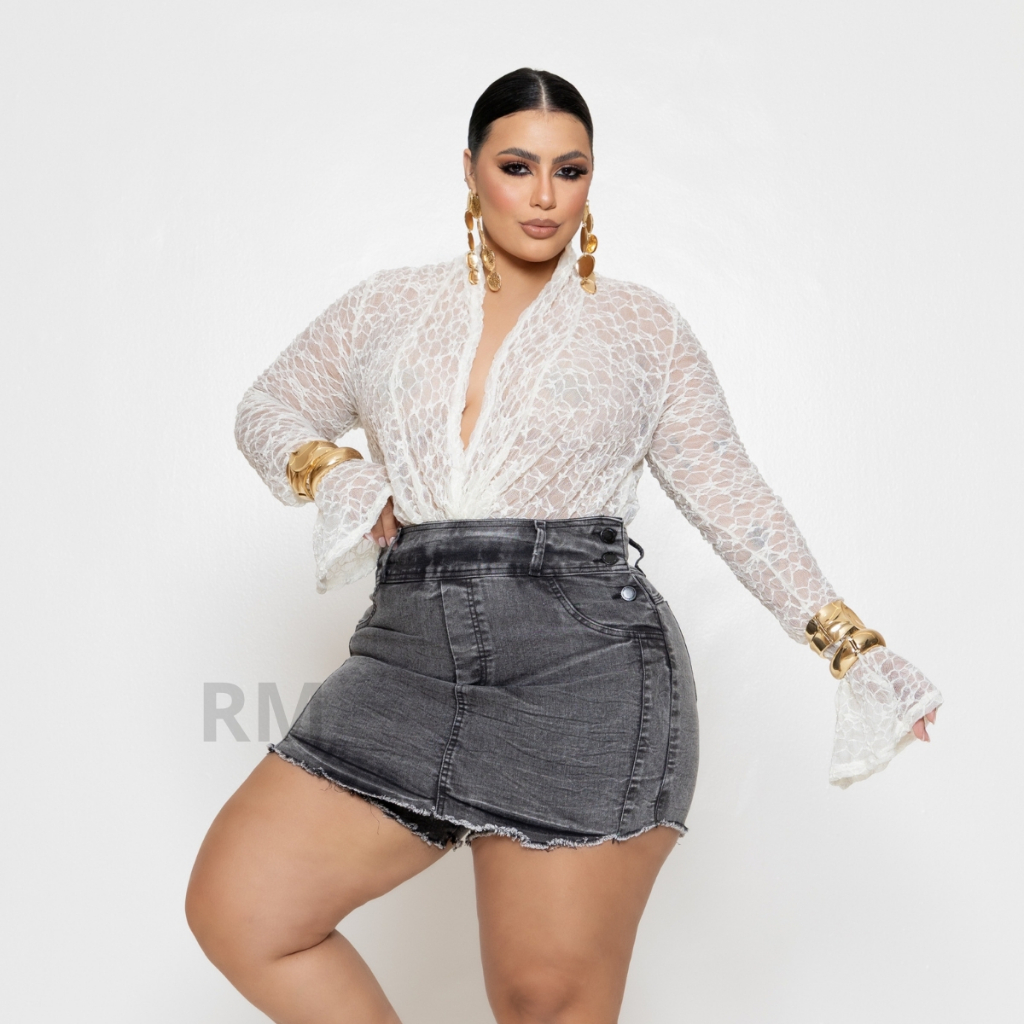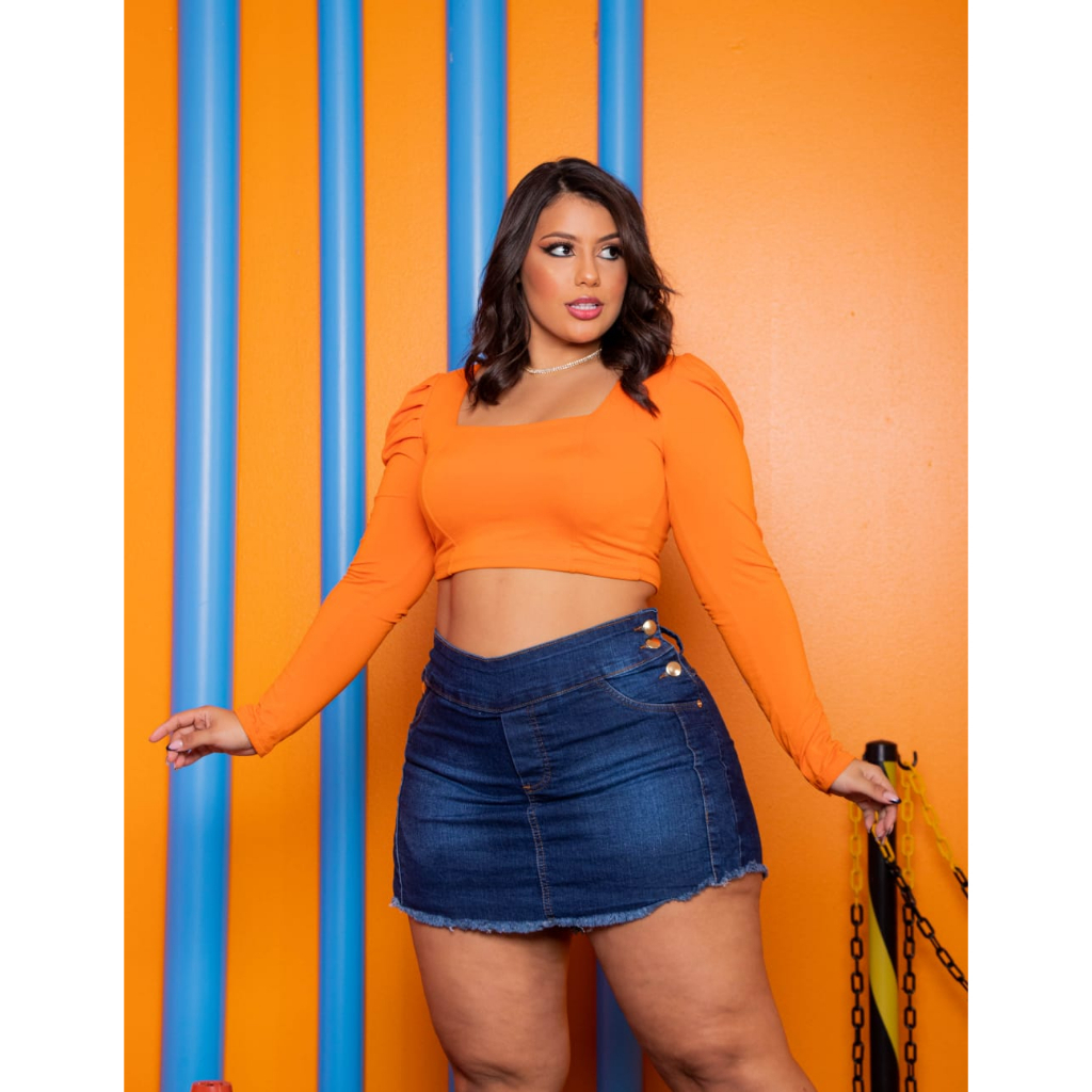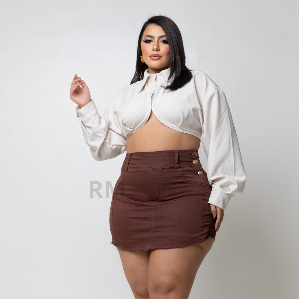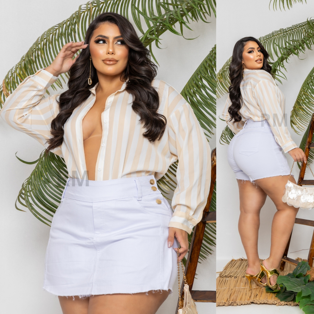 Roupa Feminina Shorts Saia Jeans Feminino Plus Size C/ Lycra Moda Confortavel
