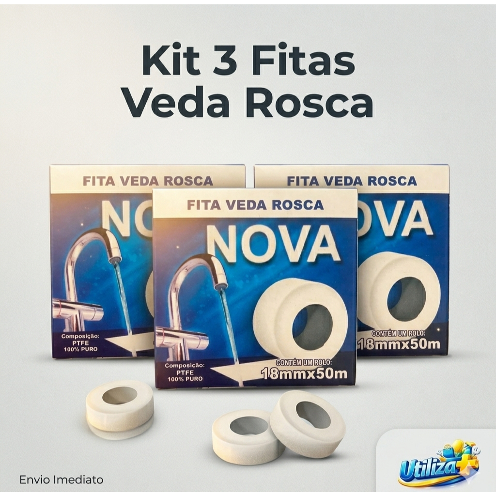 Kit 3 Fitas Veda Rosca PolyFita para Vedação Profissional - Envio Imediato - Marcas Variadas Disponibilidade de Estoque
