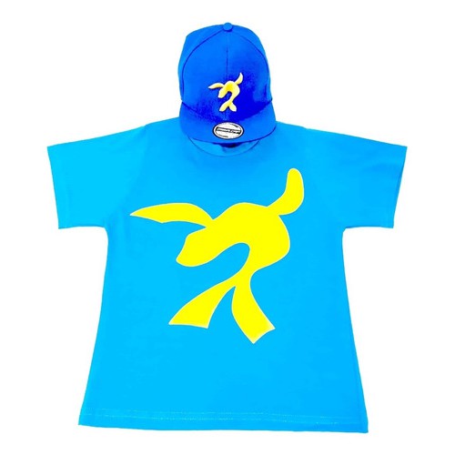 Camiseta Infantil Luccas Neto + Pedra Do Poder Azul + Boné Luccas bordado com ajuste atras