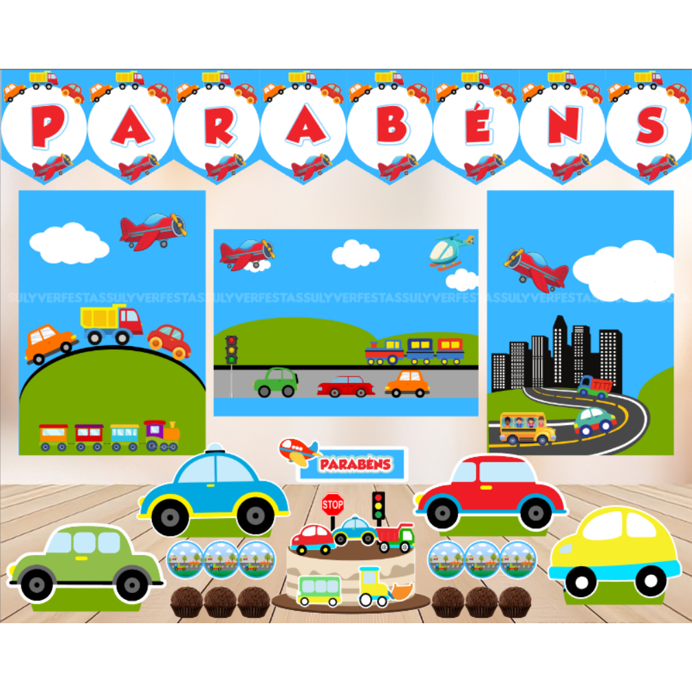 Kit Só um Bolinho - Carrinhos - Festa em Casa - Mesversário