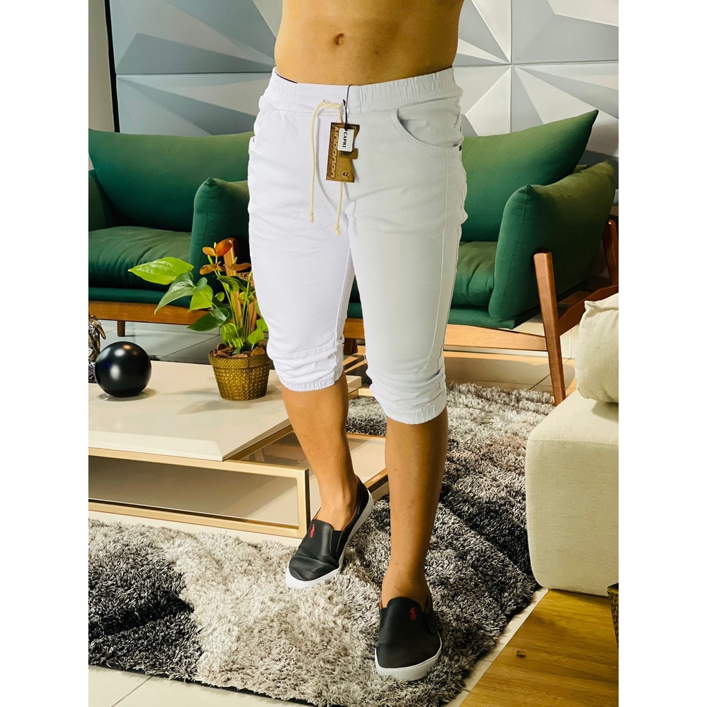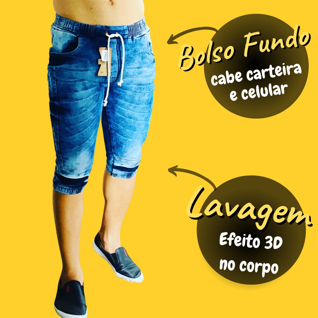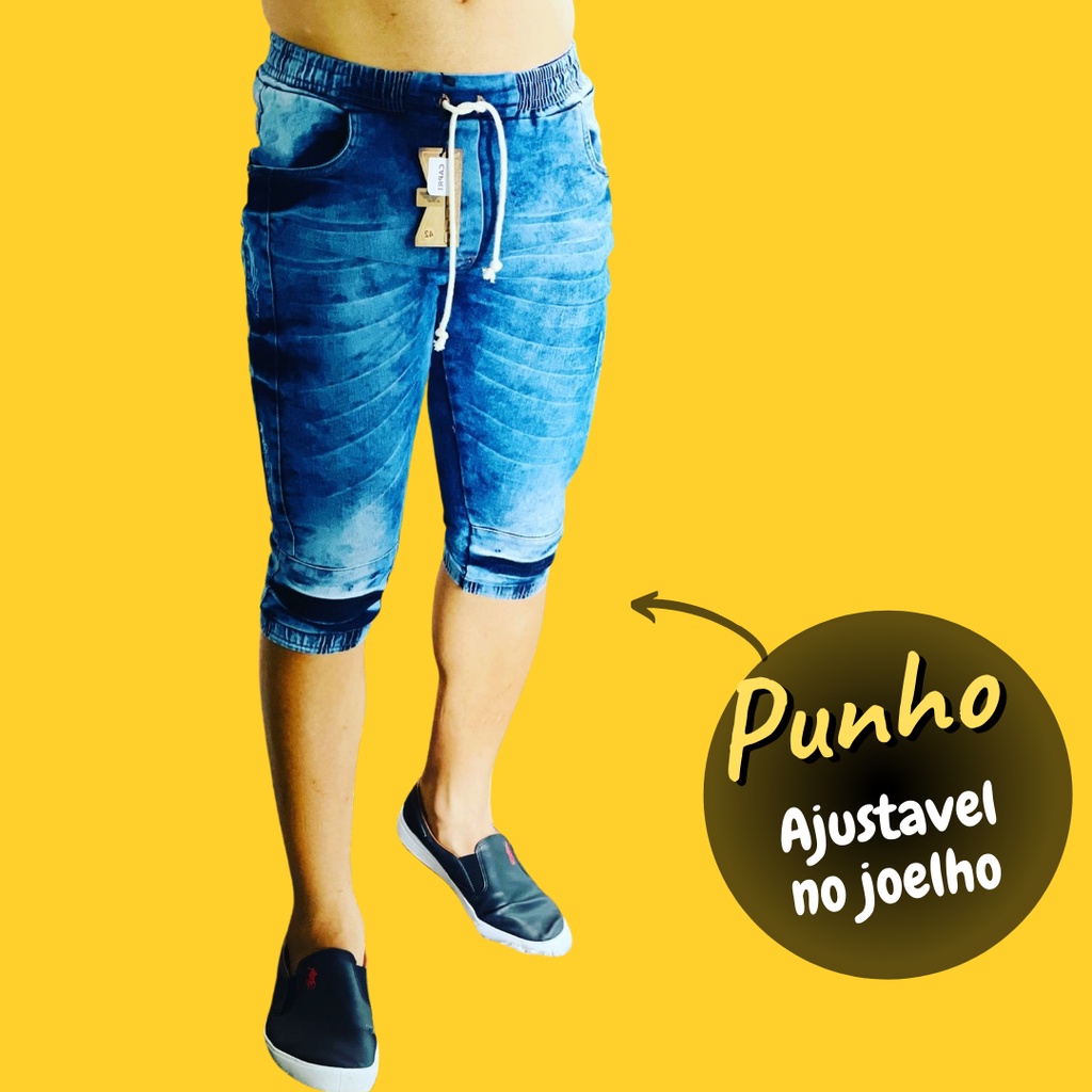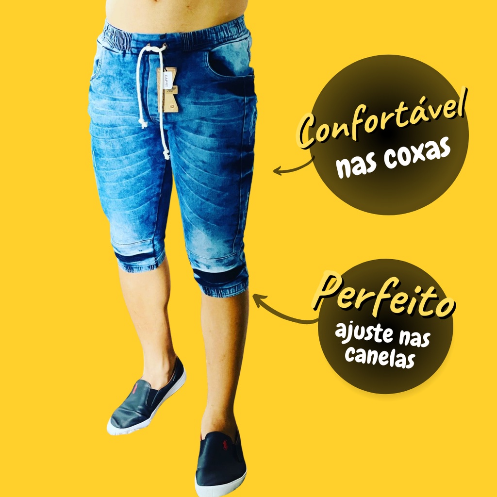 Bermuda jogger jeans Calça Capri Masculina Jogger Sarja Brim Punho Shorts