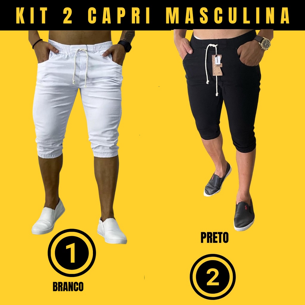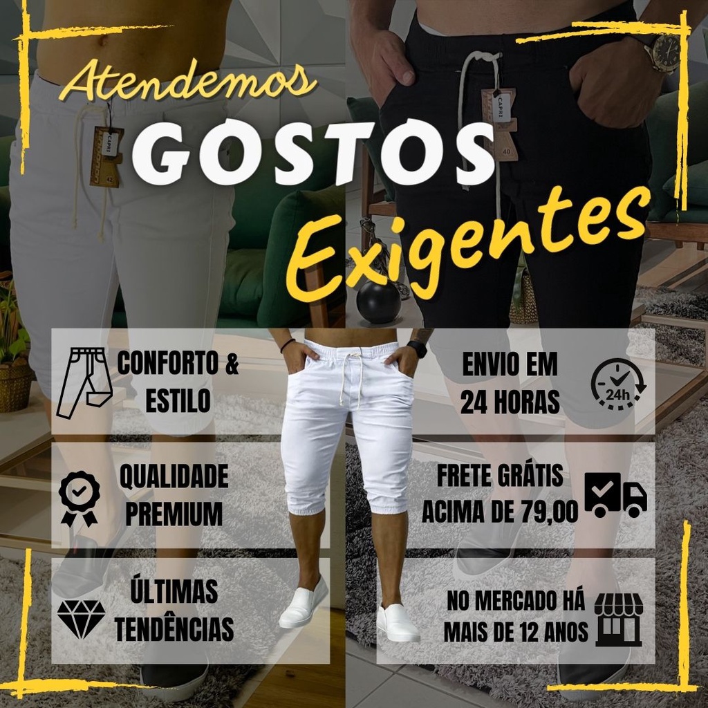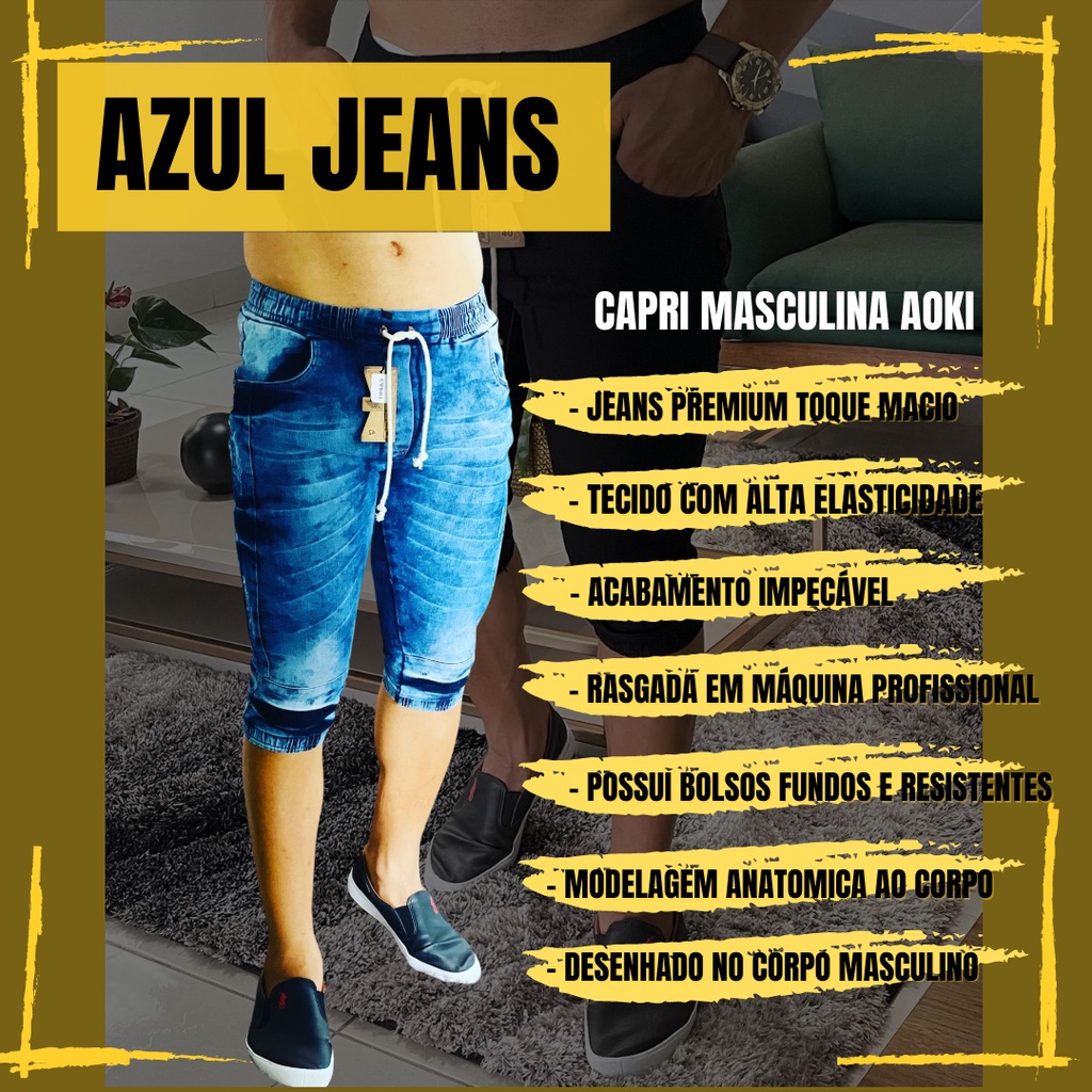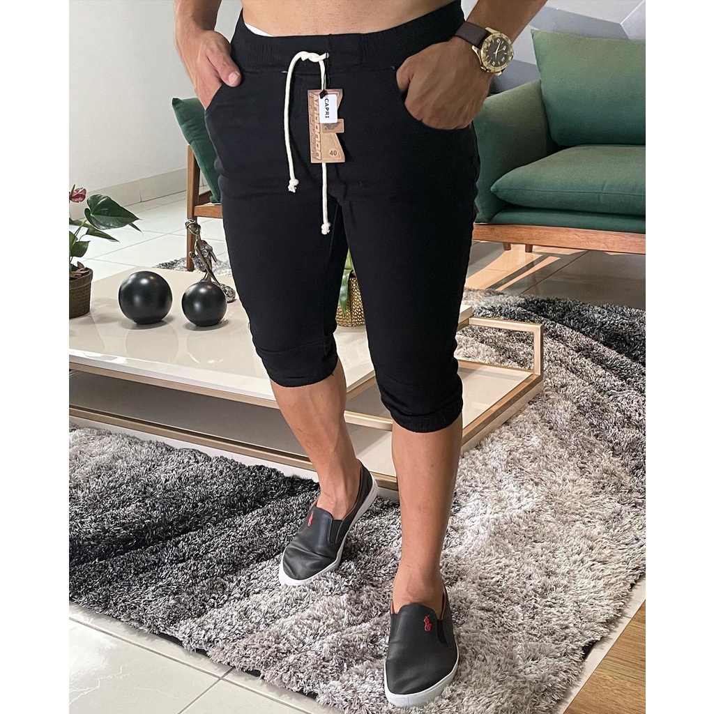 Bermuda jogger jeans Calça Capri Masculina Jogger Sarja Brim Punho Shorts