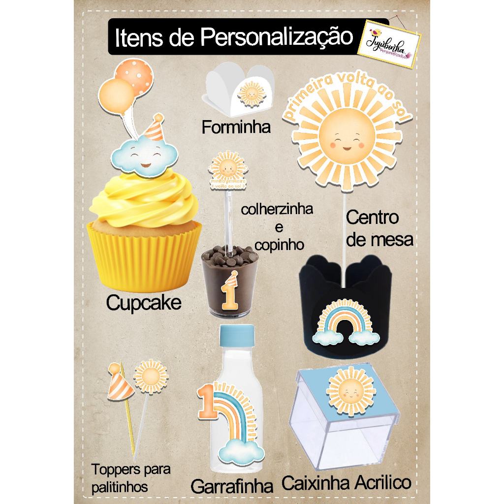 APLIQUES RECORTADOS - PRIMEIRA VOLTA AO SOL LARANJA - LEMBRANCINHAS, TUBETES, DECORAÇÃO, ANIVERSÁRIO